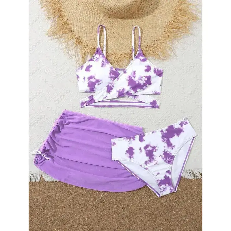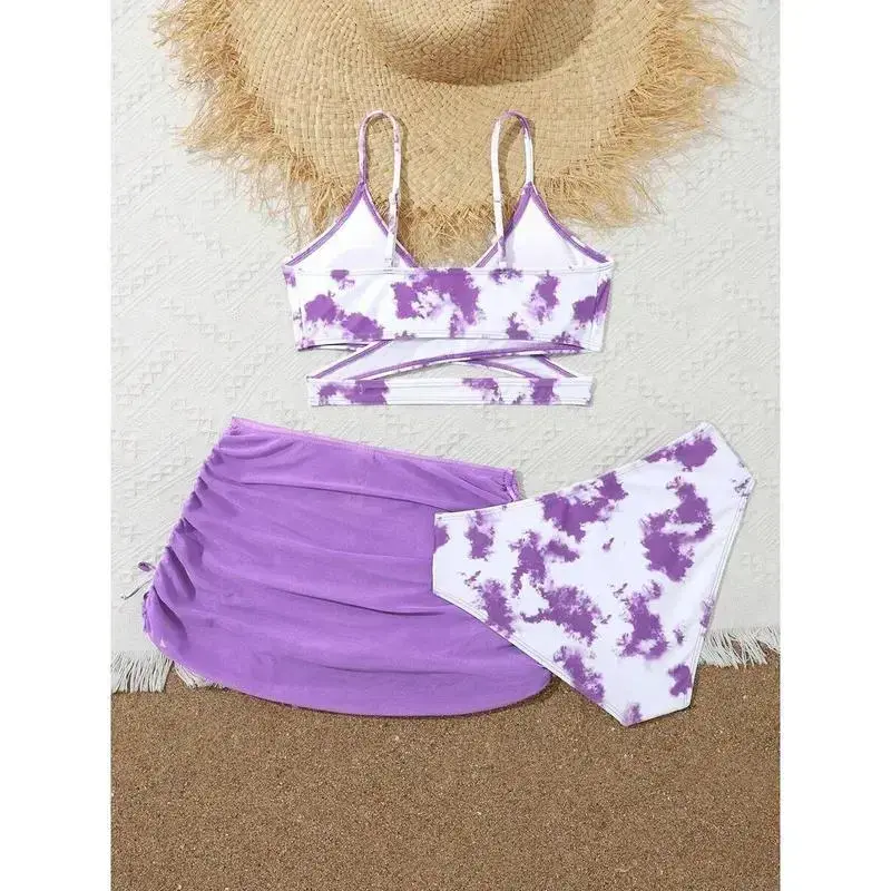 TeenGirls'TieDyeBikiniSet(3Pieces)KidsSwimming,KidsBeachwear