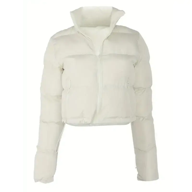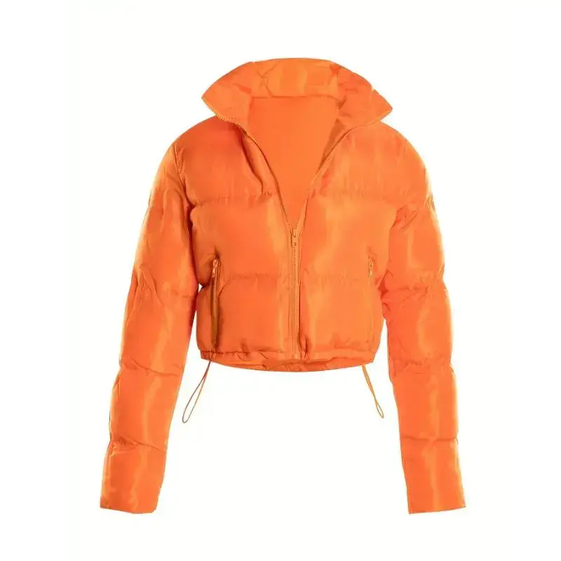 Zipper Warm Puffer Jackets For Winter Hiking Ski, Solid Color Crop Puffer Coat, Women's Clothing for Koningsdag/King's Day Collar Womenswear Tops Hoodie