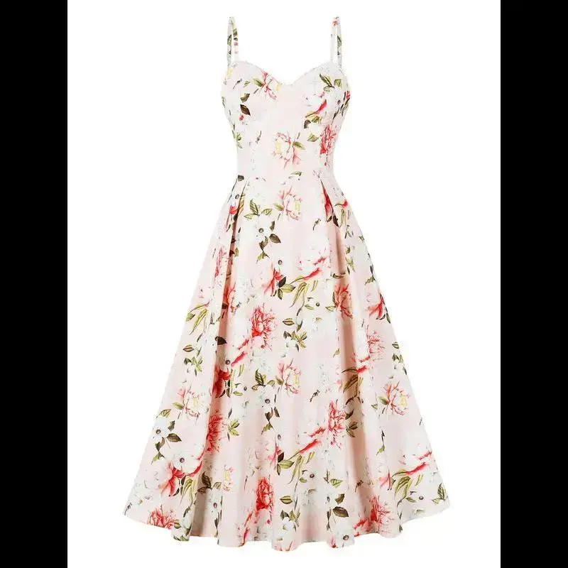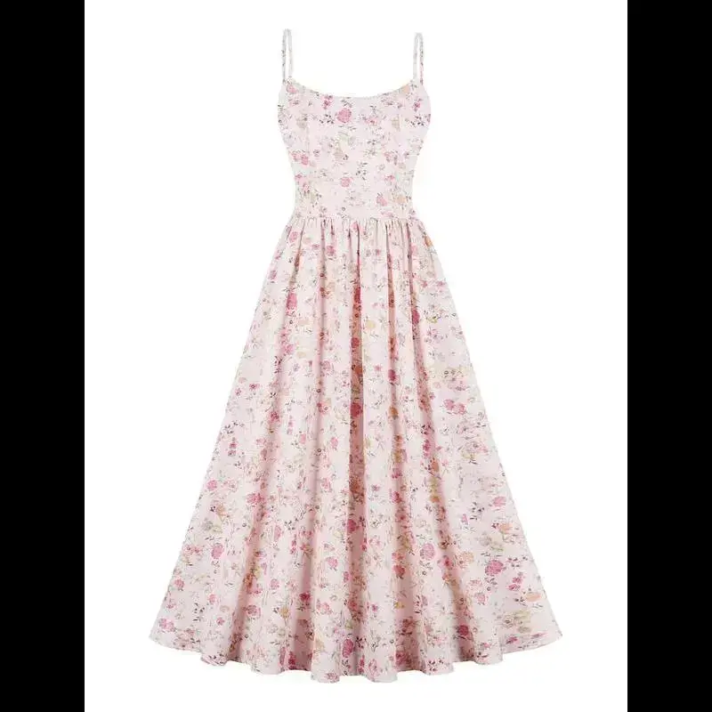WomenFloralCorsetDressSpaghettiStrapsSquareNeckCasualWaistSplitCasualBeachDresses,MilkmaidDress,WomenswearComfort