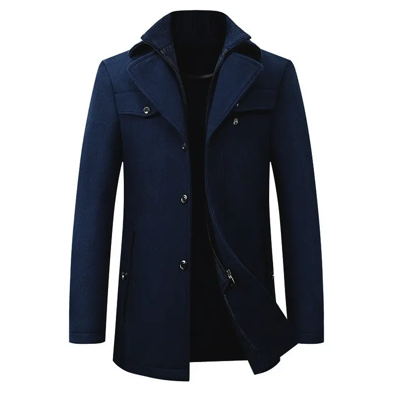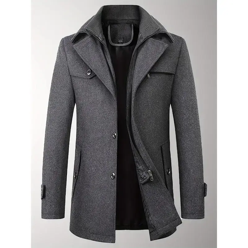 Men's Wool Blend Double Collar Pea Coat Casual Thermal Trench Coat With Removeable Collar Thicken Winter Warm Over Coat