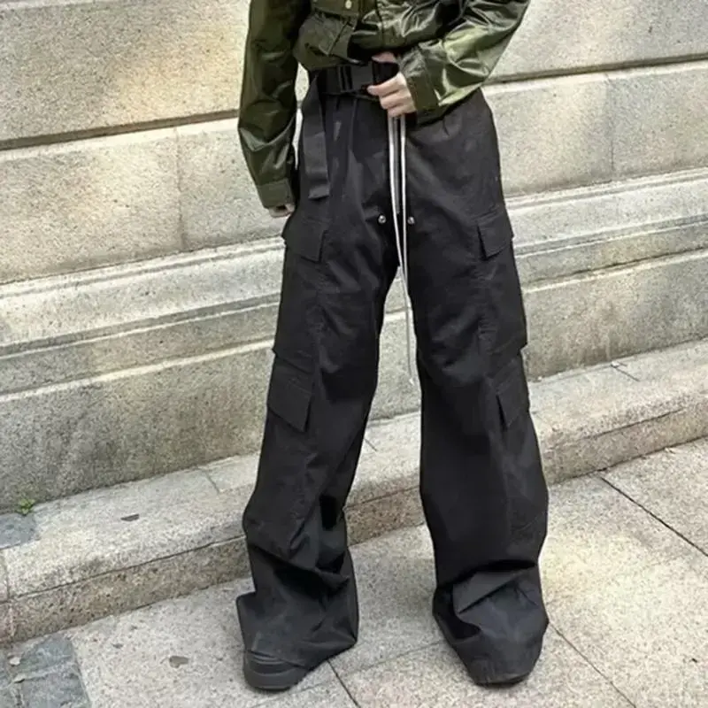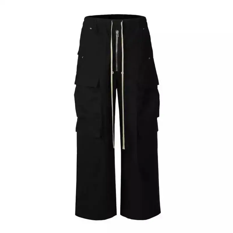 The fit is slightly larger and longer, please choose according to your preference. The fit is slightly larger and longer, please choose according to your preference. 2024 New Black Cargo Pants Spring Summer American Style Multi-Pocket Loose Wide-Leg Casual Pants for Men