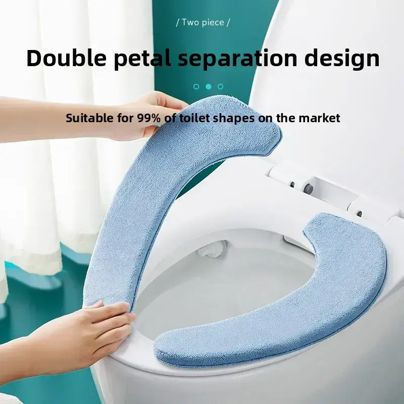 A set of 2 toilet seat cushions made of 1.5cm thick plush material, soft and reusable, machine washable, suitable for various toilets, household toilet seat covers, universal for all seasons, adhesive and waterproof, toilet accessories.