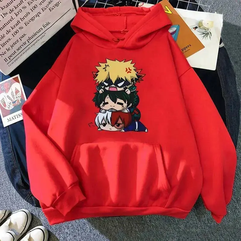 Autumn Winter Hooded Pullover Cartoon My Hero Academia Anime Hoodies Deku Bakugou Katsuki Todoroki Shoto Print Hooded Sweatshirt