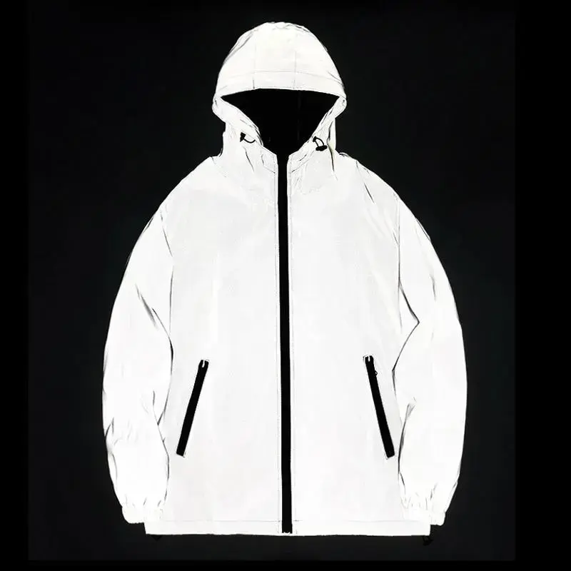 2025NEW SIZE Night Reflective Jackets Double Fabric Windbreaker Hooded Jacket Men Hip Hop Dancer Waterproof Zipper Coats Outwear Outdoor Menswear Tights Medium Polyester Tops