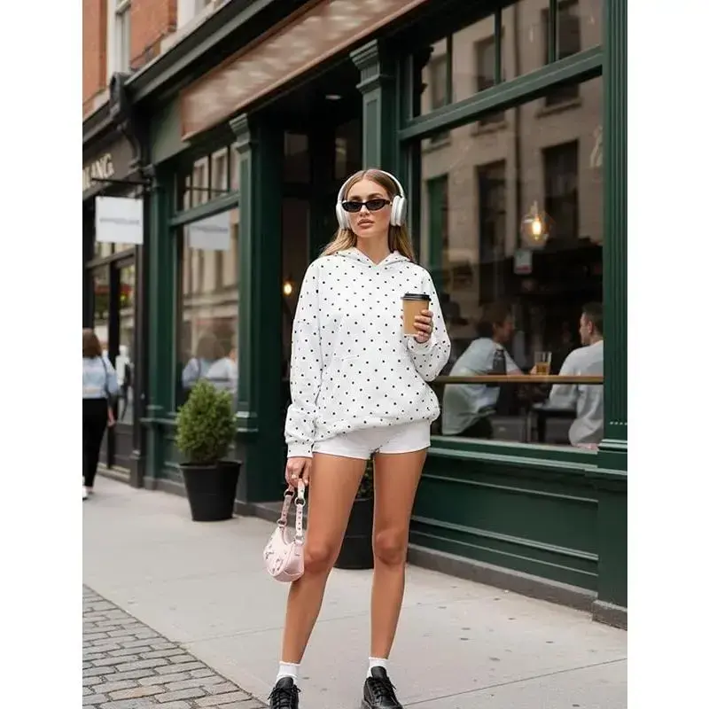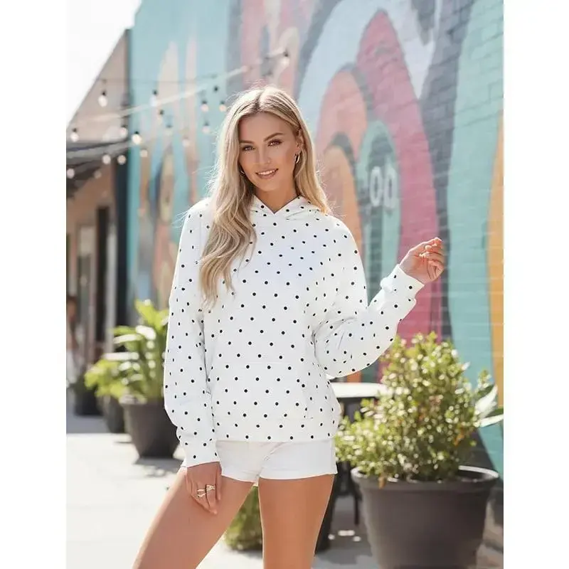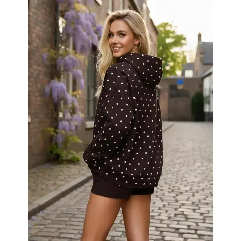 Women's Oversized Polka Dot Fleece Hoodie Long Sleeve Drop Shoulder Graphic Print with Pocket Brown Cozy Loungewear Sweatshirts for Daily Wear Casual Outfits
