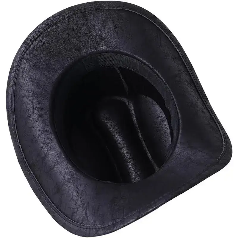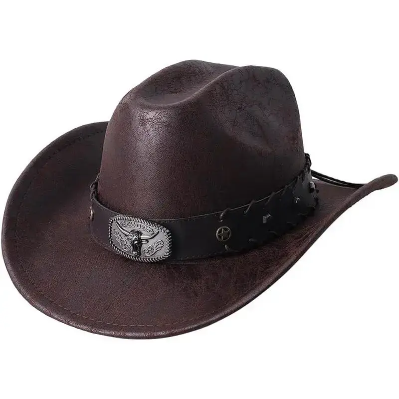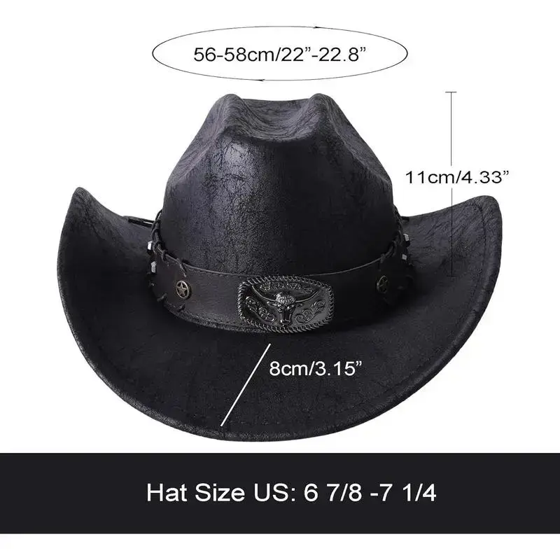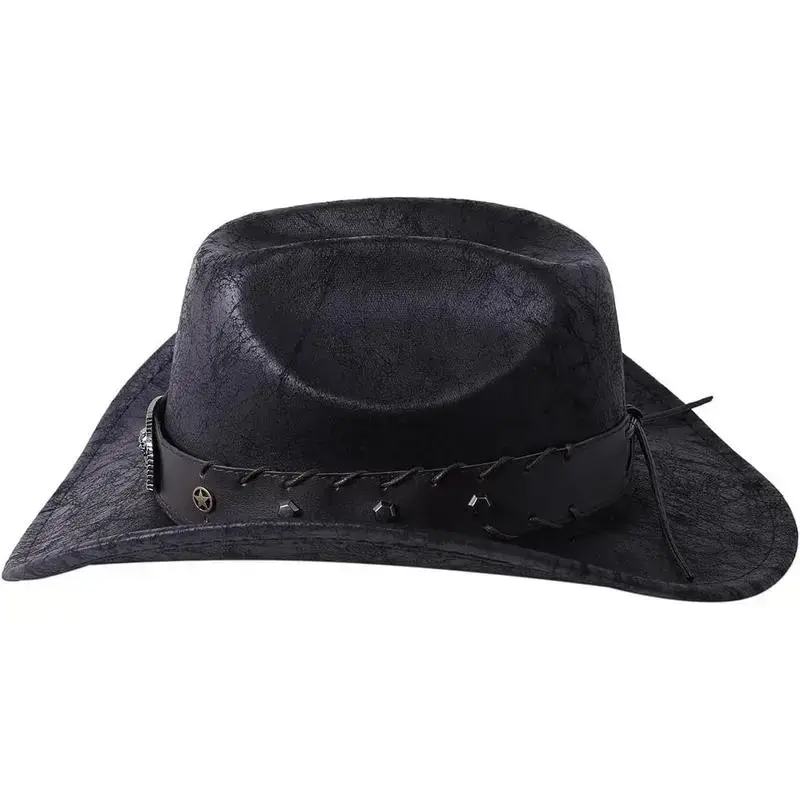Women Men Leather Western Hat Cowboy Hat Cowgirl hat Wide Brim Hat with Lanyard
