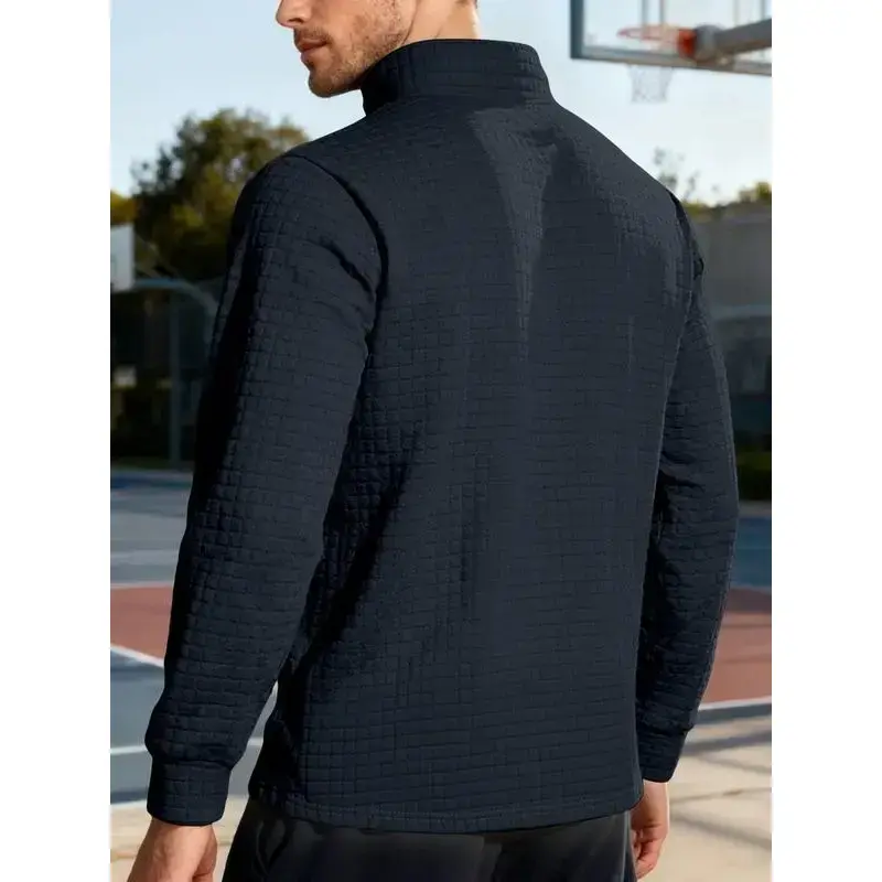 【Half-Zip Neckline】: Features a convenient half-zip collar, allowing adjustable coverage and easy layering for varying temperatures. 【Warm Fabric】: Made from a thermal knit fabric, ensuring warmth and comfort during the autumn and winter seasons. 【Waffle Texture】: Showcases a unique waffle knit pattern, offering a distinctive look while enhancing insulation and breathability. 【Fitted Cut】: Designed with a fitted silhouette, providing a modern profile that flatters while remaining functional for various activities. 【Plain Colorway】: Available in a solid color, making it easy to coordinate with different outfits for a streamlined appearance.