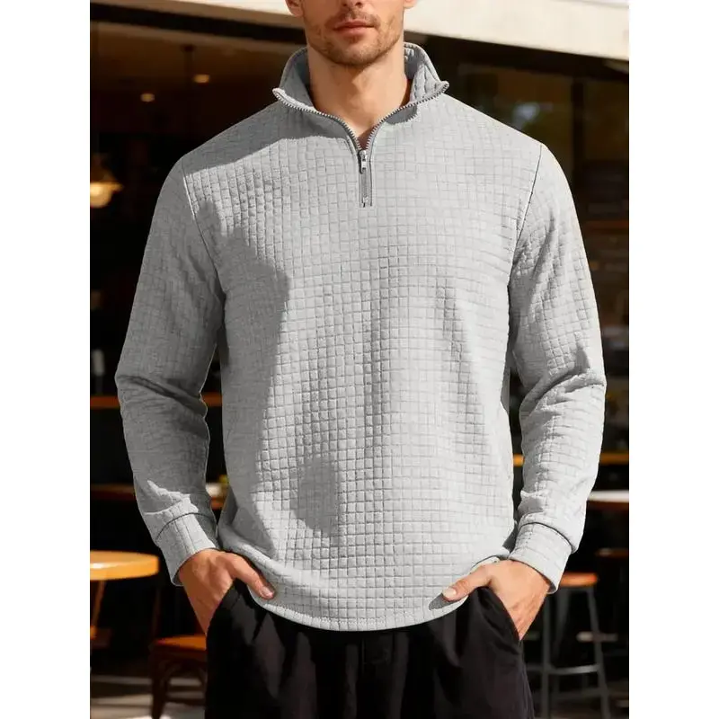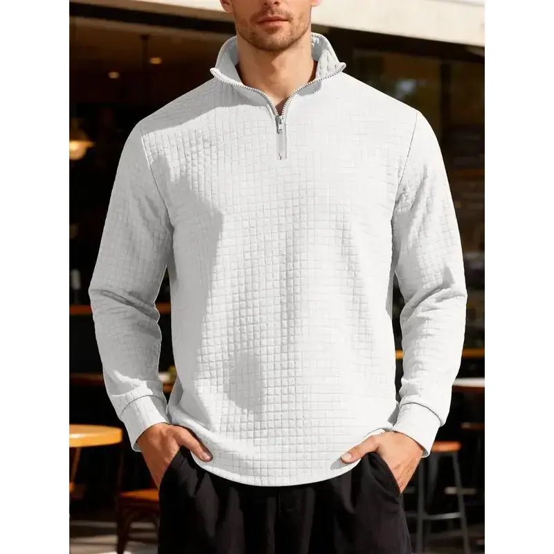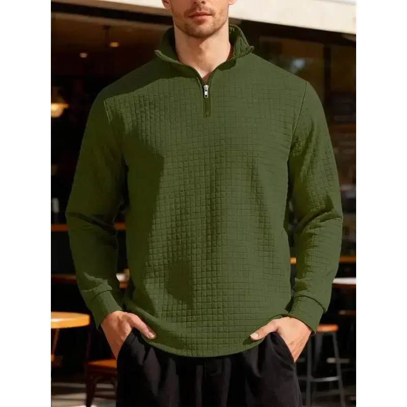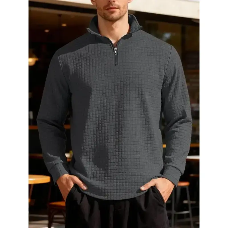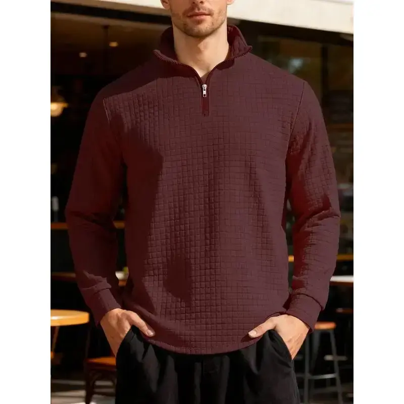 New men's solid color waffle long sleeve knitted pullover hoodie, half zipper stand collar design, autumn and winter season wear, the fabric warm and comfortable, suitable for home leisure and outdoor sports, fashion and simple me