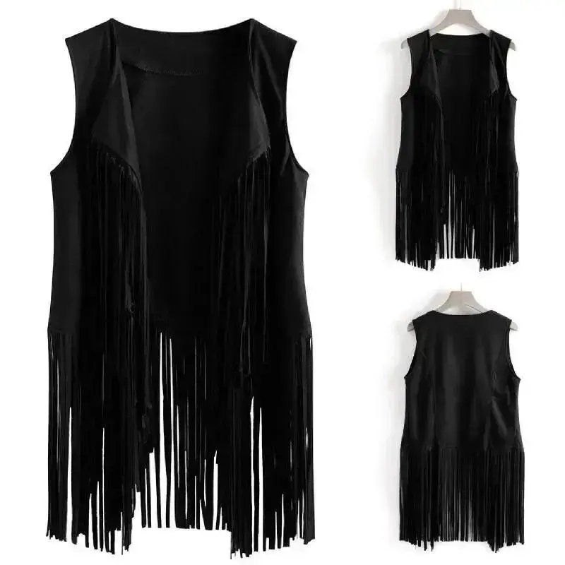 Fringe Vest Soft Cowgirl Vest Sleeveless Cropped Fringe Jackets Brown Tassel Vest Hippie Costumes Womenswear Tops