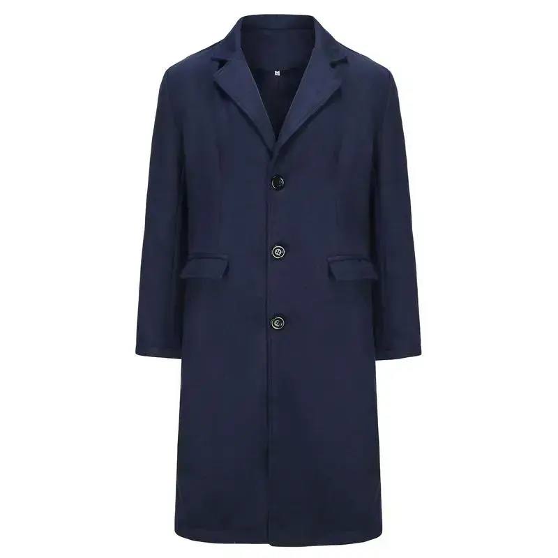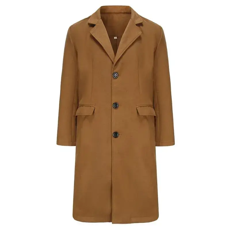 Men's Casual Trench Coat Slim Fit Notched Collar Long Jacket Overcoat Single Breasted Pea Coat wih Pockets