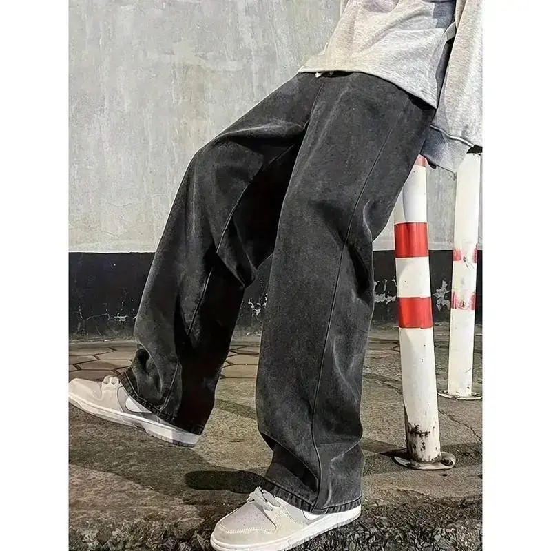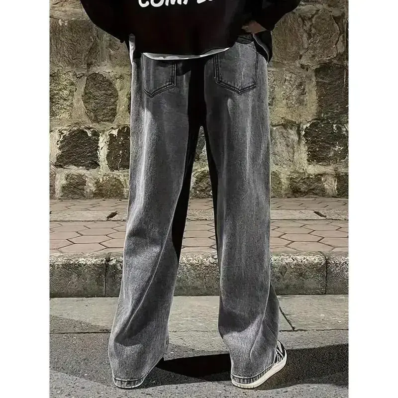 Scenes:Daily/Ideal for:conventional/Pattern Type:Colorblock, Plain/Style:Casual - Modern Casual/Closure Type:Drawstring Waist/Details:Drawstring, Pocket, Zipper/Color:Grey/Type:Wide Leg/Waist Line:Natural(Mid Waist)/Length:Long/Fit Type:Loose/Fabric Elasticity:Non-Stretch/Material:Denim/Composition:90% Cotton, 5% Polyester, 5% Viscose/Care Instructions:Machine wash, do not dry clean/Body:Unlined/Sheer:No/.