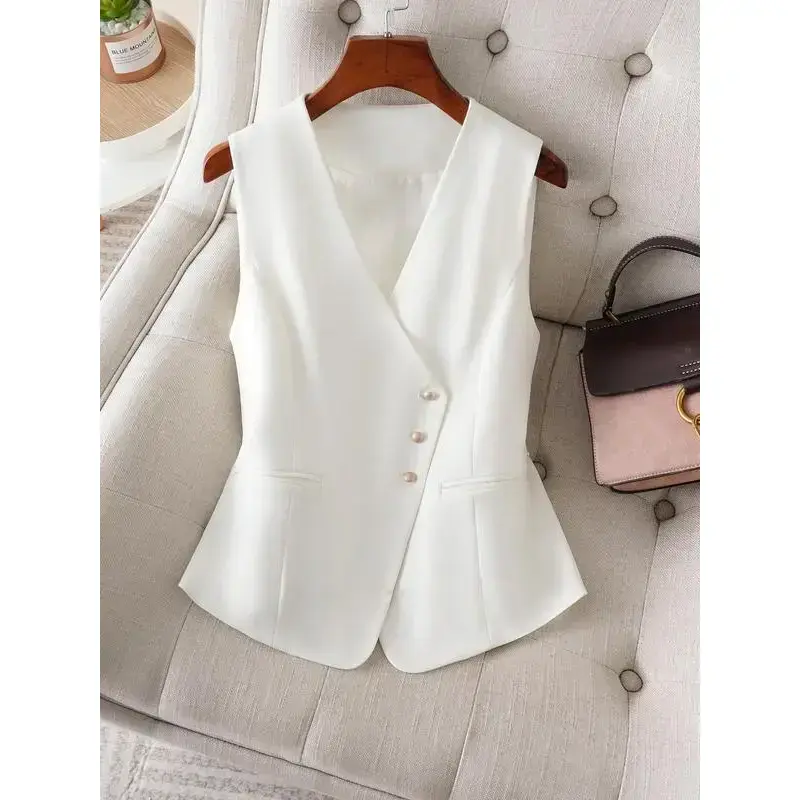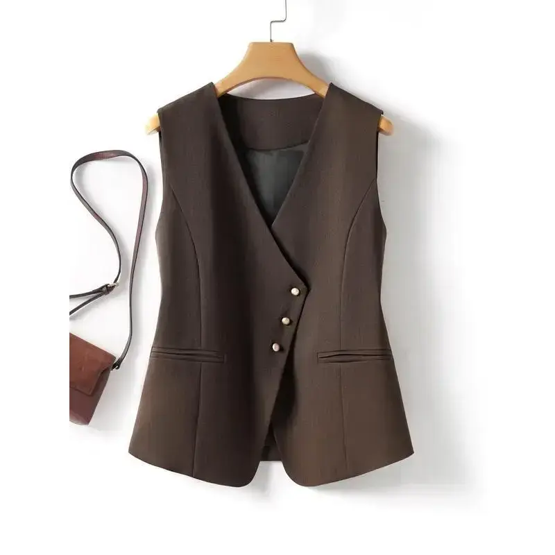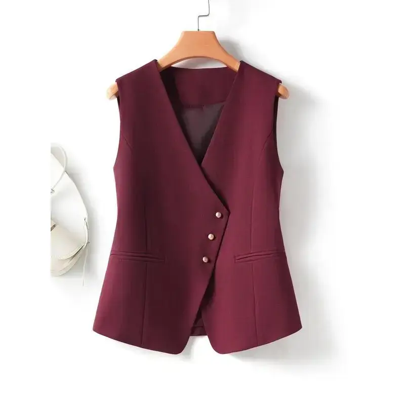 Women's Solid Asymmetrical Button Front Vest Blazer ? Elegant V Neck Sleeveless Outerwear ? This women's solid asymmetrical button front vest blazer is perfect for spring and fall. It features an elegant V neck and is sleeveless, making it ideal for work, office, and business settings. The vest blazer is a versatile addition to any ladies' wardrobe. Real Pocket Perfect Gift This vest blazer makes a great gift for women who appreciate elegant and versatile outerwear. It is a thoughtful choice for any occasion.