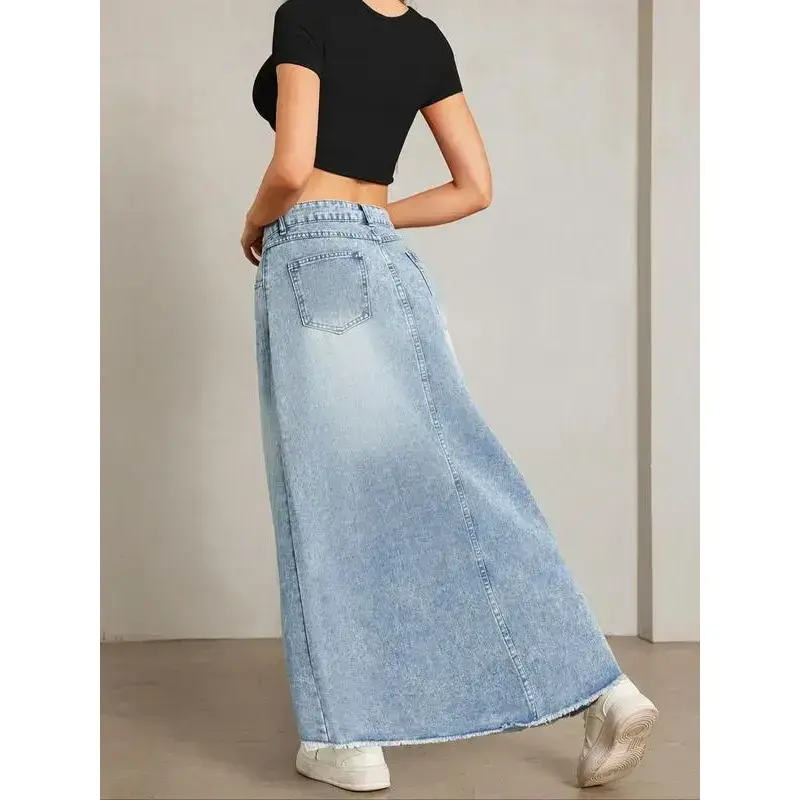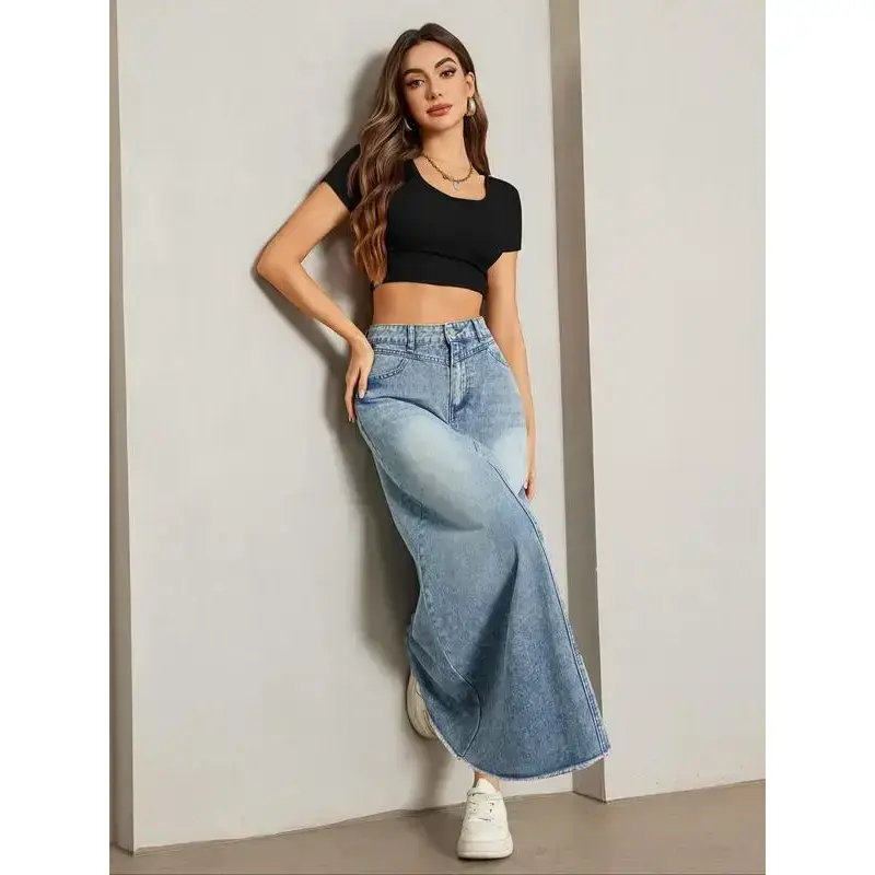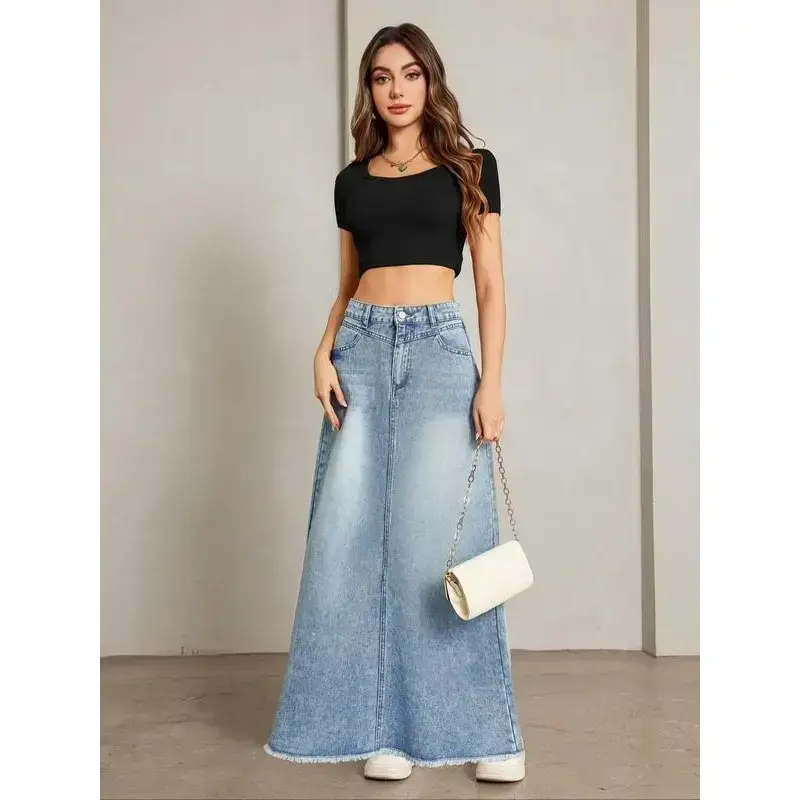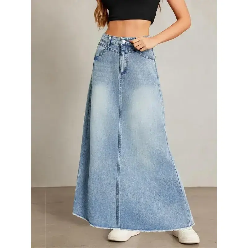 Women's Pocket Denim Skirt, Street Fashion Casual Comfy Denim Skirt for Daily Outdoor Wear, Ladies Bottoms for Summer