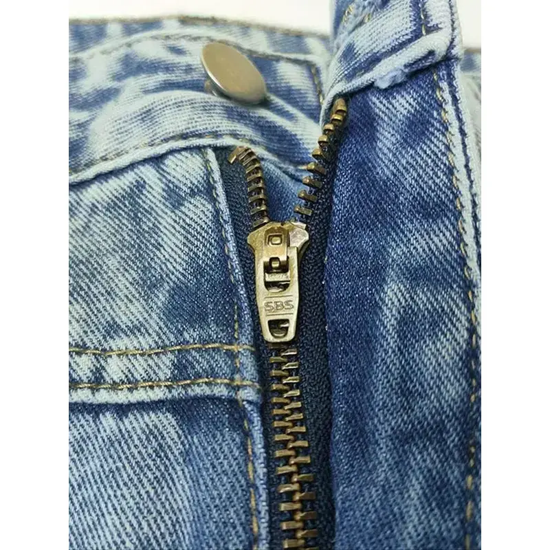 Studded Low Rise Washed Denim Mini Skirt