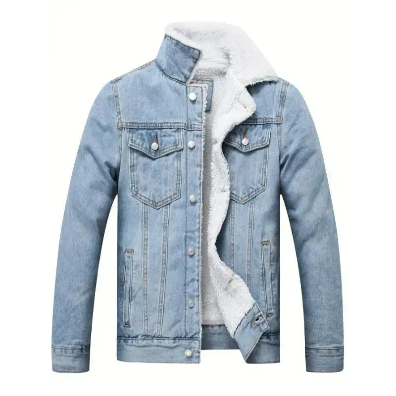 Denim Jacket Overview ?? The Men's Fleece Lined Denim Jacket is a casual winter warm button trucker jacket. It features a regular fit and long sleeves. The jacket is made from 20% denim, 20% wool, and 60% cotton. It includes pockets and a solid color design. The fabric is non-stretch, with a single-breasted placket and lapel collar. Perfect for casual wear, it can be machine washed or professionally dry cleaned. Material and Care ?? Additional Details ??
