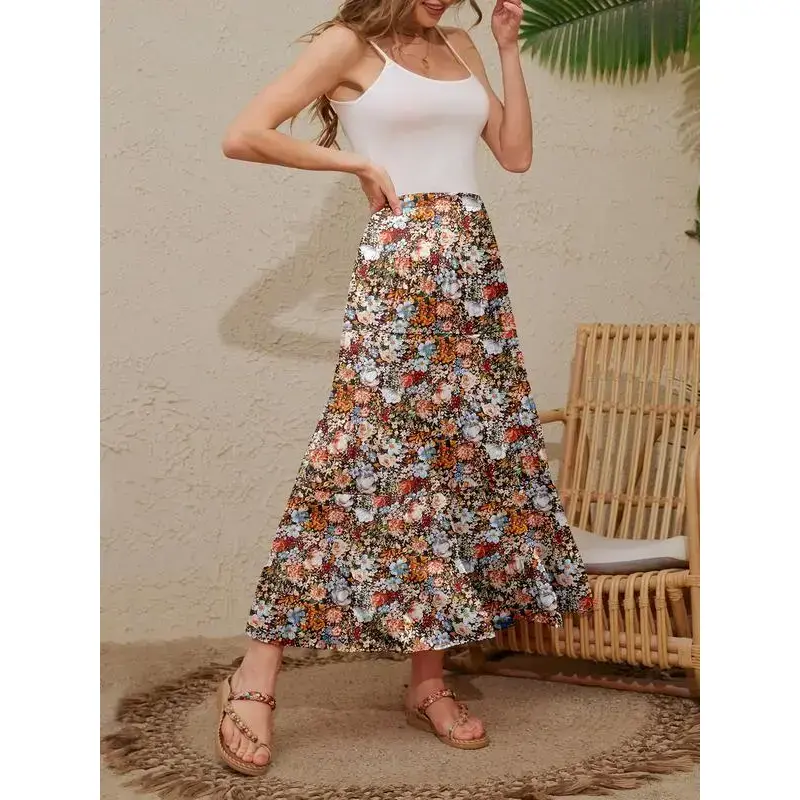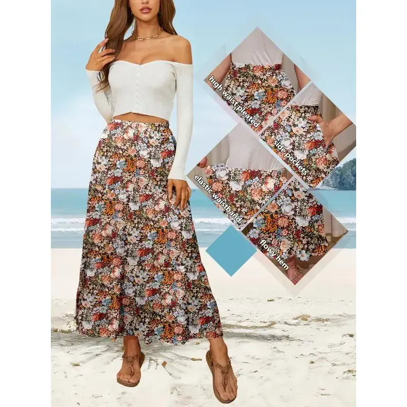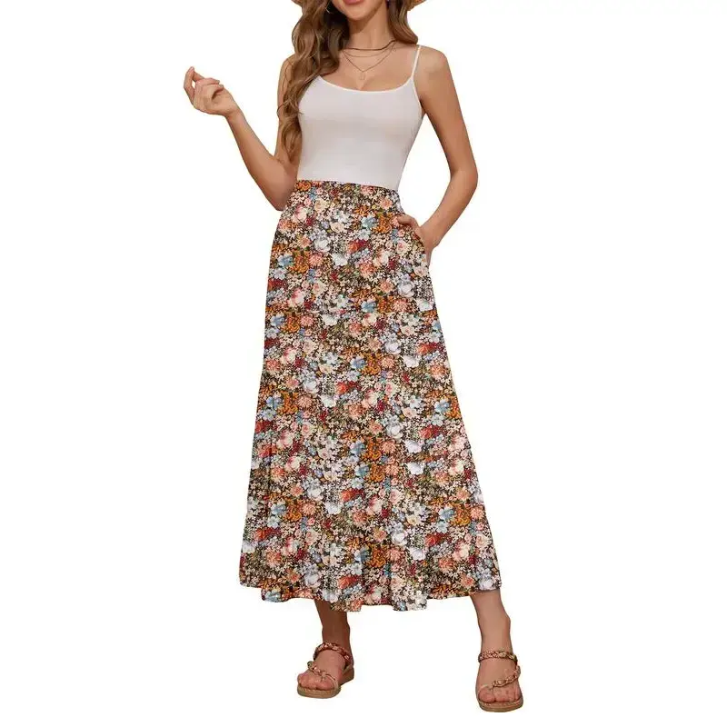 NASHALYLY Summer Flowy A Line Maxi Skirt With Side Pockets Women's Maxi Skirts Boho High Waist Pleated Long Skirt Womens Casual Spring Summer Fall Winter Tiered Floral Long Skirts Perfect For All Seasons Fit For Home Party Beach Vacation Date... More Colors and Details, Choose the Right Size for You