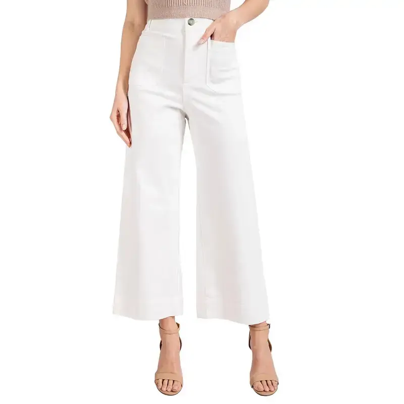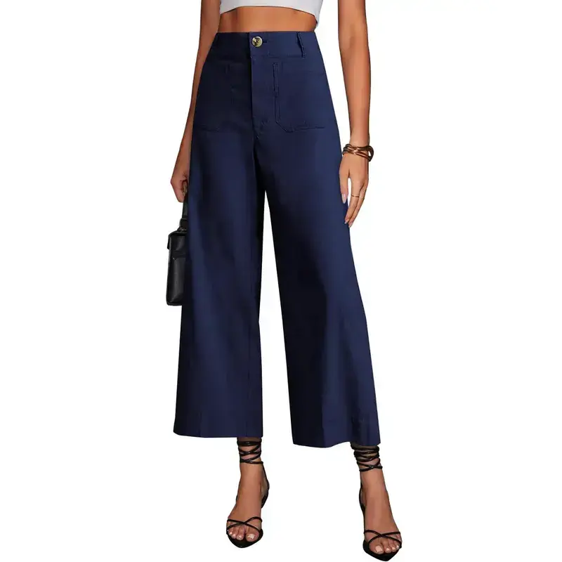 Womens High Waisted Cropped Wide Leg Stretchy Straight Pants Trousers with Pockets