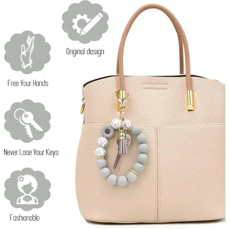 Care instructions Hand Wash Origin Made in the USA or Imported Country of Origin China Free up Your Hands - When you have full hand shopping bags, push a stroller in the park or just lazily enjoy the sun on the beach, put women keychain wristlet on your wrist. It will hold your house, car keys securely, so you can free up your hands to focus on things more important. Life savier when carrying in groceries, kids, etc. It sounds impossible until you try it, then you’ll never be able to go back No Keys Lost - Being annoyed by the round keychain bracelets that fall from your arm easily?Are you always digging in purse for your keys?We have updated, this gray key ring bracelet fits like a bracelet and doesn't slip off your wrist like the large keychain bracelet , really cute and far more functional than the bangle bracelet key rings, especially if you have smaller wrists.You can wear it to drive the car, run, shop, and travel Well Made&Comfortable Wear - Beaded key holder bracelet are made of BPA-free and food grade silicone, gold-plated keyring and PU leather tassel. The beads won't scratch against your skin or cause any irritation. Silicone wristband feels soft and comfortable on your wrist, the double stretch cord is elastic and durable, it can fits most women's wrists. The gold-plated keyring and lobster clasp will not easily chip off and will maintain its luster for a long time Stylish & Practical - No need to choose between practicality and aesthetics. Come with a variety of vibrant color beads, fashion leather tassel and practical metal gold clasp and keyring, the latest fashion designs are adopted to our car keychain for women. Our pretty bracelet key chain not only is the best choice for keeping your keys secured to your wrist or attached to your purse but also can be used as a fidget to relief stress, charms to decorate your purse. What an amazing creativity Ideal Gifts for Her - Whether you buy it for yourself or for your friends, family members, co-workers or any other ladies you cared about. this key chains women cute meets your needs to be a very useful and beautiful gift, she can use it everyday. It is an ideal gift for women on mother's day, birthday, Valentine's day, Thanks giving day, Christmas etc. Let's order now