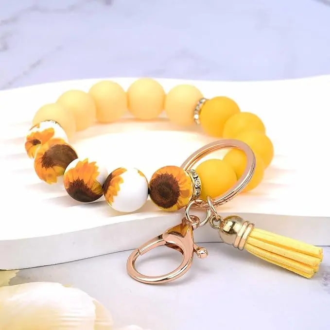 Silicone Beaded Keychain Wristlet Key Ring Bracelet Cute Car Key Chain Holder for Women Girls sale Hot selling