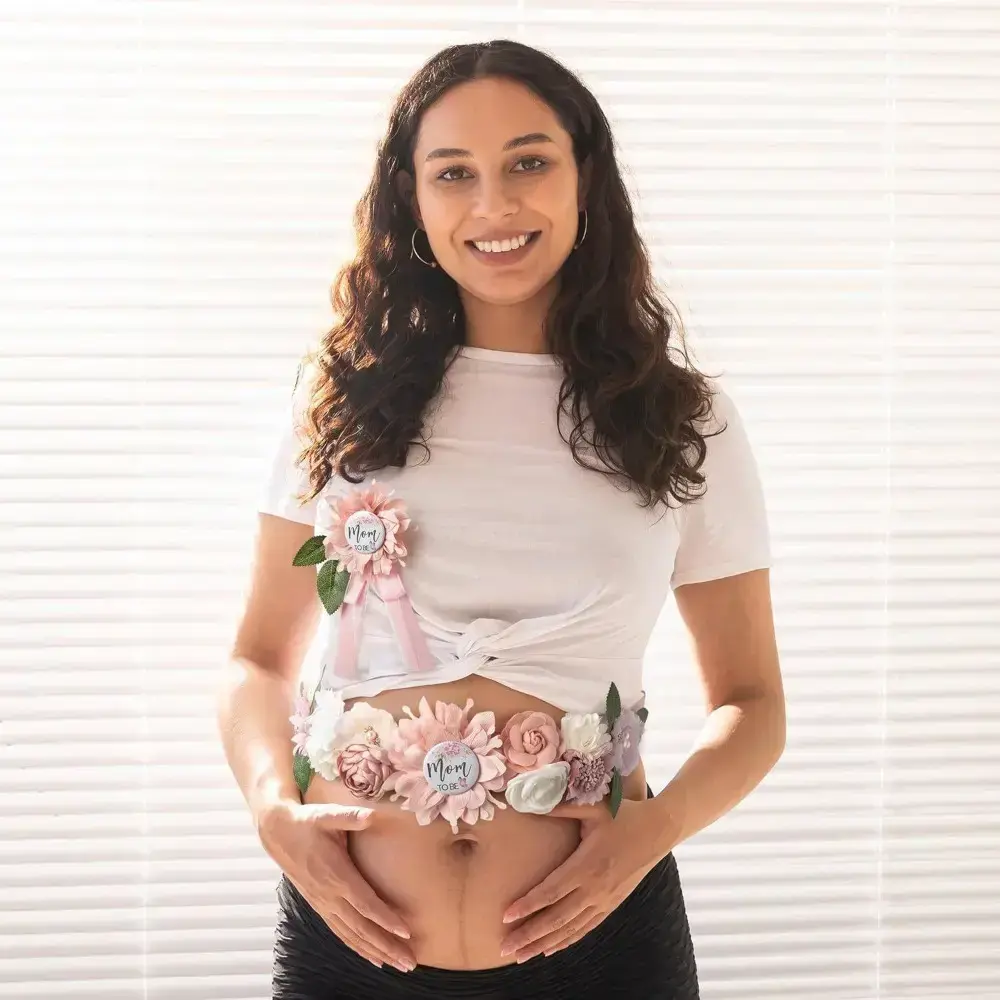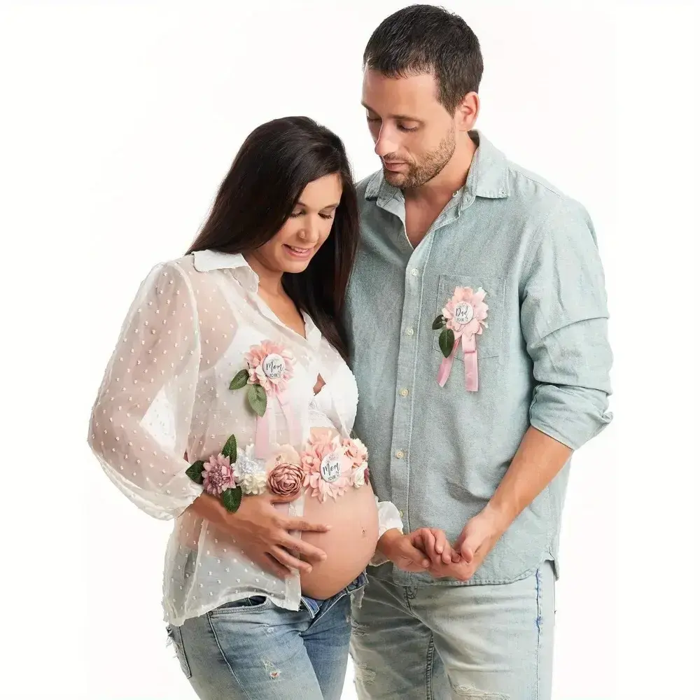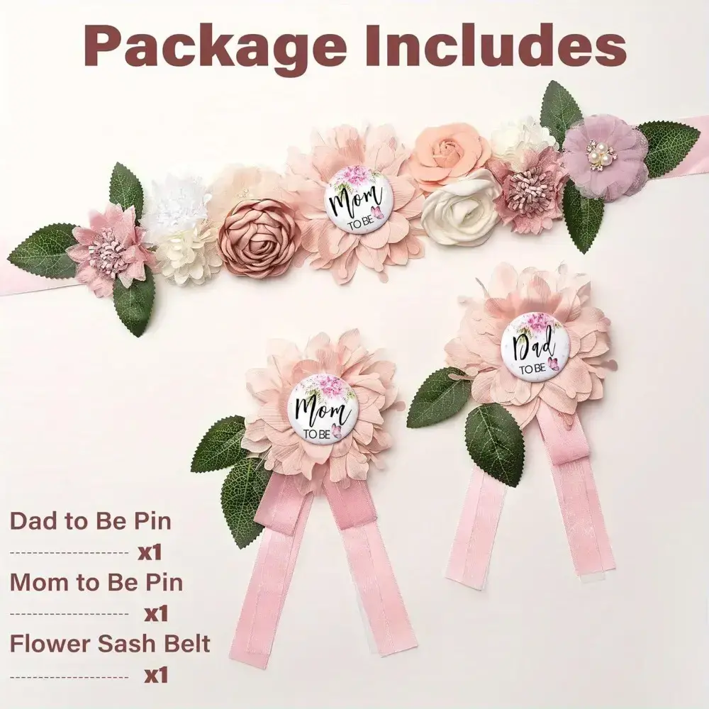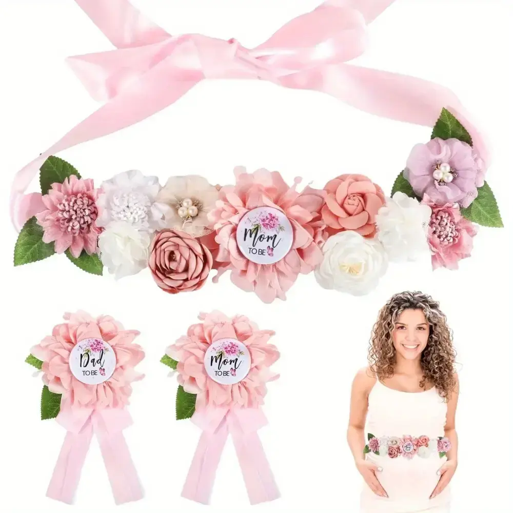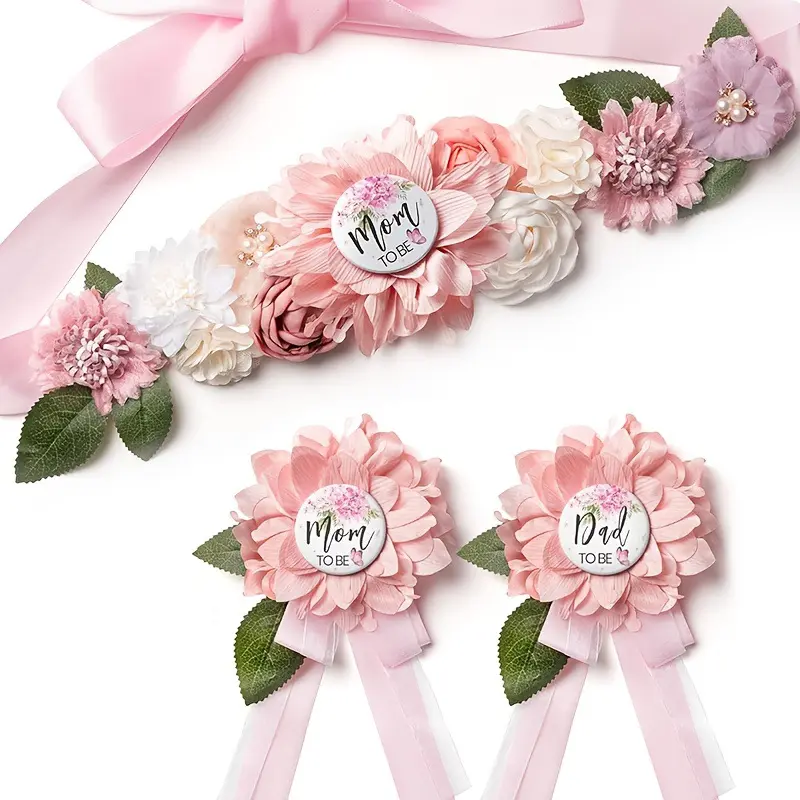 3pcs Pink Shower Sash and Pin Set - Maternity Belt with Flower Design, Mommy and Daddy To Be Badges, Perfect for Gender Reveal Parties, Weddings, and Showers, Wedding Accessories|Floral Sash Design|Ribbon Accents, Shower Decorations