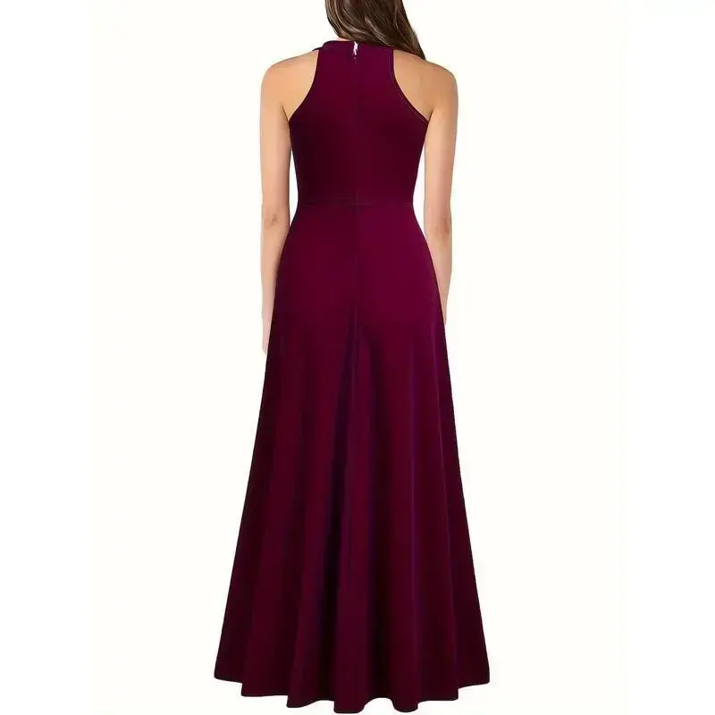 Women's Elegant Backless A-line Dress - Burgundy Side Slit High-Low Hem Long Evening Gown, Machine Washable Loose Fit, Suitable for Parties, Banquets, and All-Year Wear, Fashion Silhouette, Lightweight Fabric, Adult Outfit second