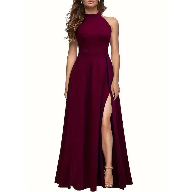Women's Elegant Backless A-line Dress ✨ Elegant and Versatile ✨ This backless A-line dress in burgundy is perfect for parties and banquets. It features a side slit and high-low hem, offering a fashion silhouette. The loose fit and lightweight fabric make it suitable for all-year wear. Available in black, navy blue, wine red, and red. Sizes range from S to XXL. Machine washable for easy care. Perfect for Any Occasion This dress is a versatile addition to any adult outfit. Its elegant design and comfortable fit make it ideal for various occasions. Whether for a special event or everyday wear, this dress is a great choice.