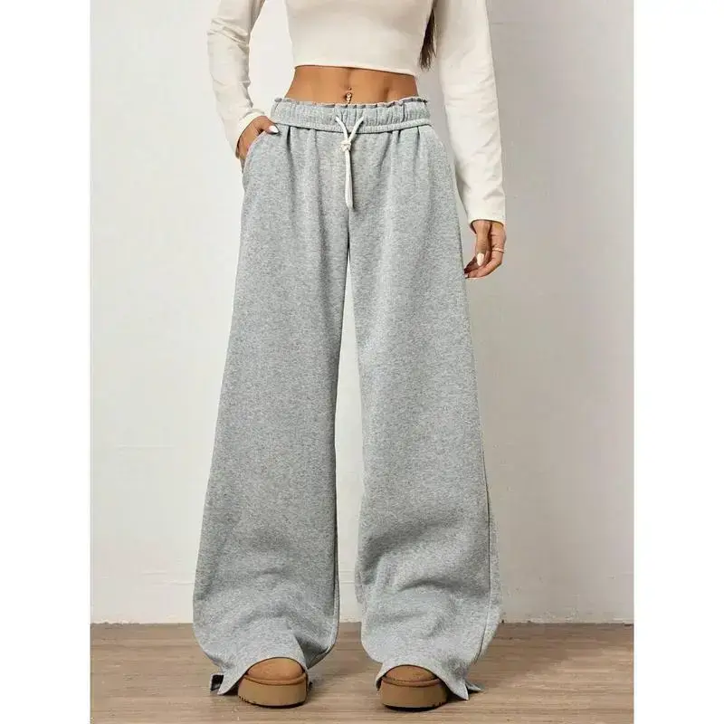 Dress Length:MiniWaist Height:High Waist Festivals:Independence Day Lined For Added Warmth:No Pattern Type:Plain Closure Type:Drawstring Waist Body:Unlined Pockets:No Details:Pocket, Split, Drawstring Color:Grey Type:Straight Leg Waist Line:(Mid Waist) Length:Extra Long Fit Type:Loose Temperature:Late Fall (10-17??/50-63?H) Fabric Elasticity:Non-Stretch Material:Knitted Fabric Composition:Polyester Care Instructions:Machine wash, do not dry clean Sheer:No