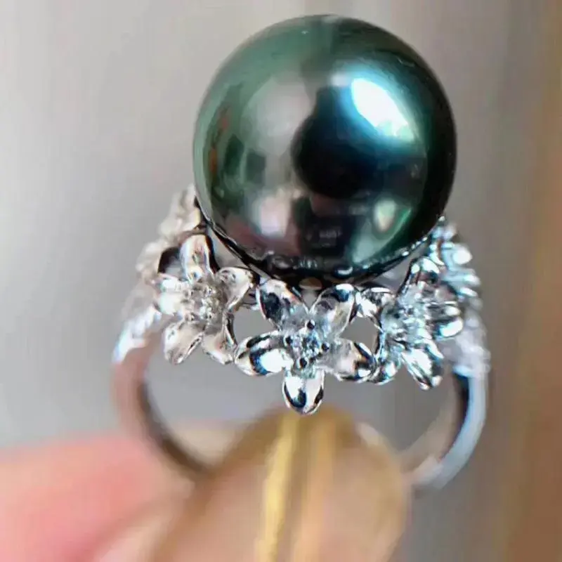 1pc of Women's freshwater Freshwater Pearls peacock green flower ring, adjustable range of 6-10 for the opening ring, fashionable accessory, perfect gift, suitable for daily use and parties, high-quality ring