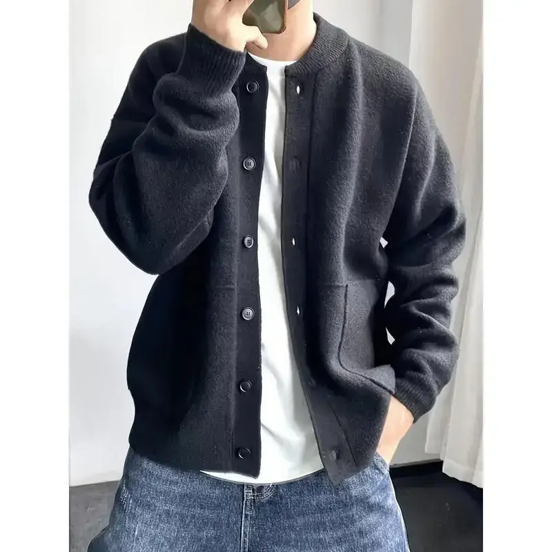 Men's Thickened Cardigan Sweater Jacket - Warm Winter Coat, Loose Long Sleeve Button Closure Design, Soft Light Beige Fabric Suitable for Daily and Formal Outfits - Urban Street Style Outerwear
