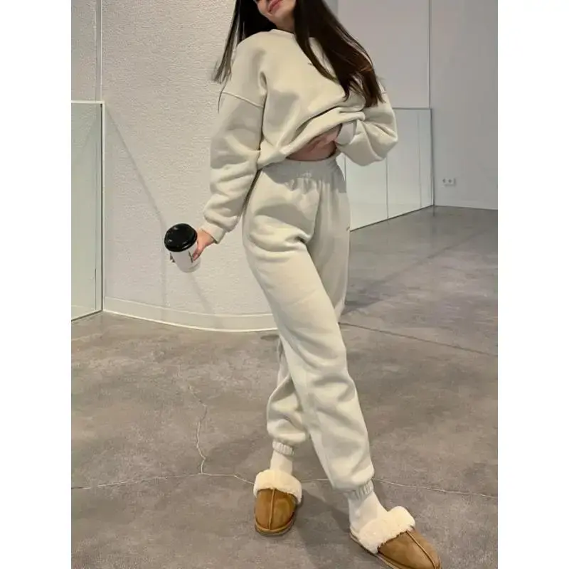 2-Piece Cozy Fit Womens Outdoor Sport Casual Set - Soft Sweatshirt and Joggers Combo - Fall Winter Collection, Solid Color, Comfortable and Breathable Fabric, Ideal for Daily Leisure and Outdoor Activities Sleeve Womenswear Sleeve