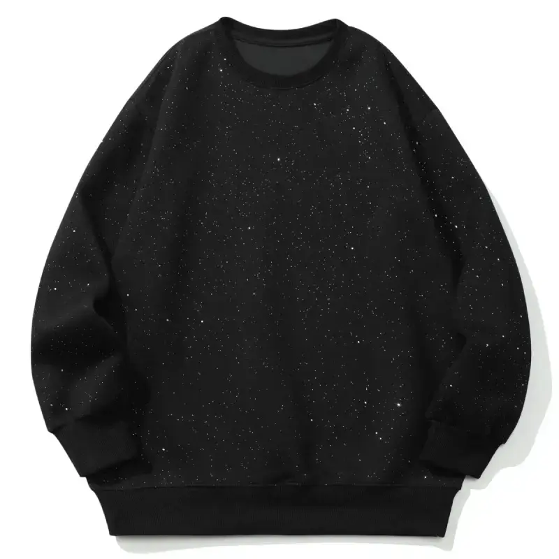 Gypsophila Round Neck Black Sweatshirt for Men and Women, Spring and Autumn Couple Retro Versatile Jacket Clothes Suits Womenswear Gamis