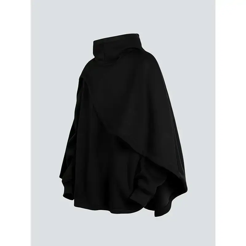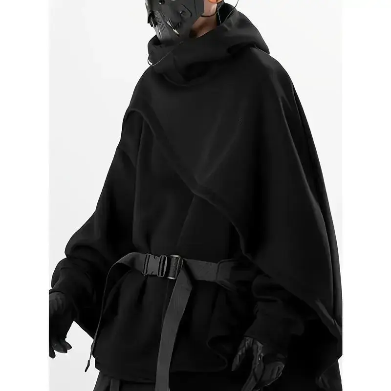 Men's Functional Style Collar Cloak Hoodie Hooded Two-piece Cloak Jacket (Single Top Without Belt Accessories) Long Sleeve Black