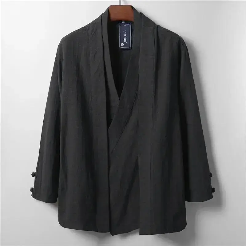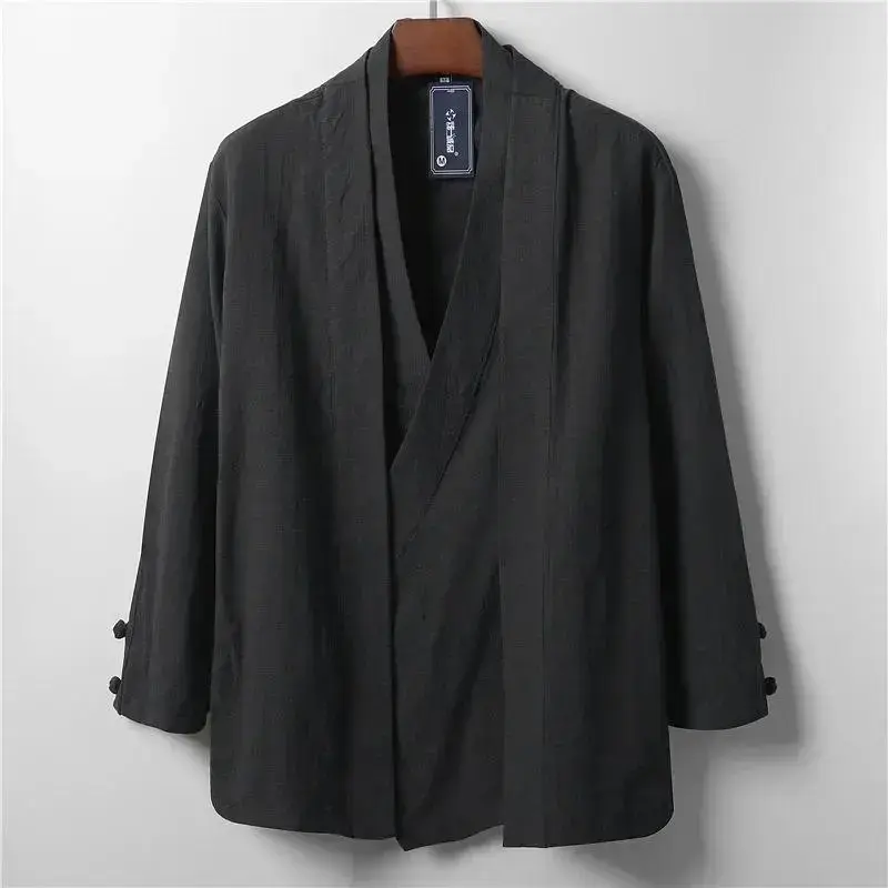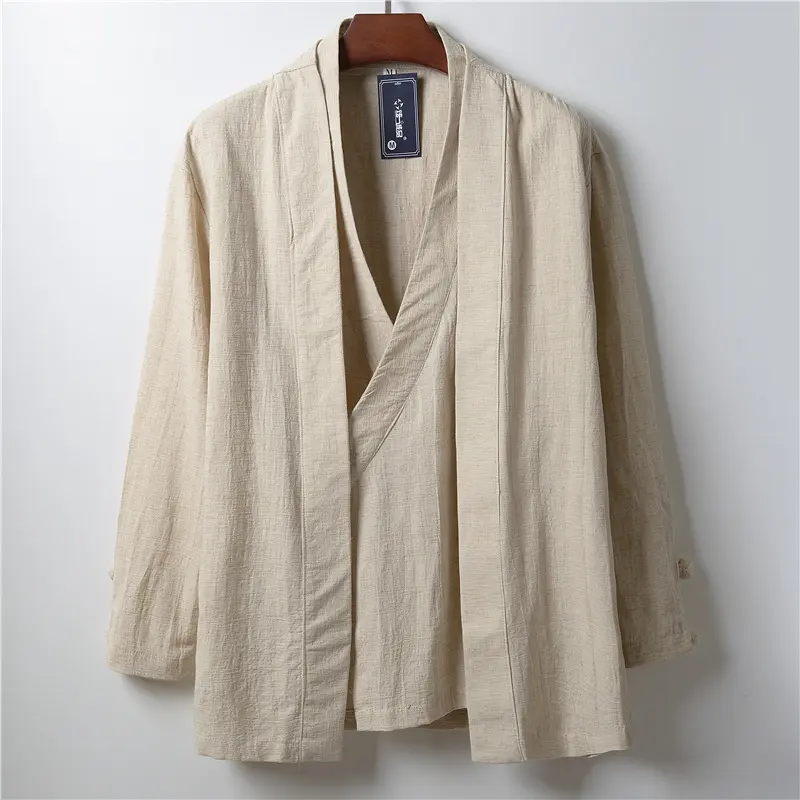 whether full opening:NoHign-concerned Chemical:NoneCraft of Weaving:KnitApplicable Season:SpringApplicable Scene:TripPlace Of Origin:China (mainland)Sleeve Style:regularCuff Style:CONVENTIONALFabric Type:BroadclothType:LooseDetachable Part:NoneDecoration:ButtonLining Material:COTTONThickness:StandardHooded:NoClosure Type:Open StitchPattern Type:SolidCollar:V-NeckStyle:Chinese StyleClothing Length:regularSleeve length (cm):FullMaterial:Linen,OtherOrigin:Mainland ChinaCN:JiangxiGender:MenOuterwear Type:trench