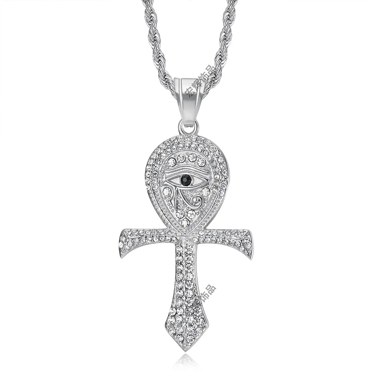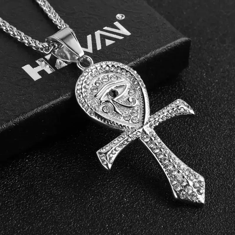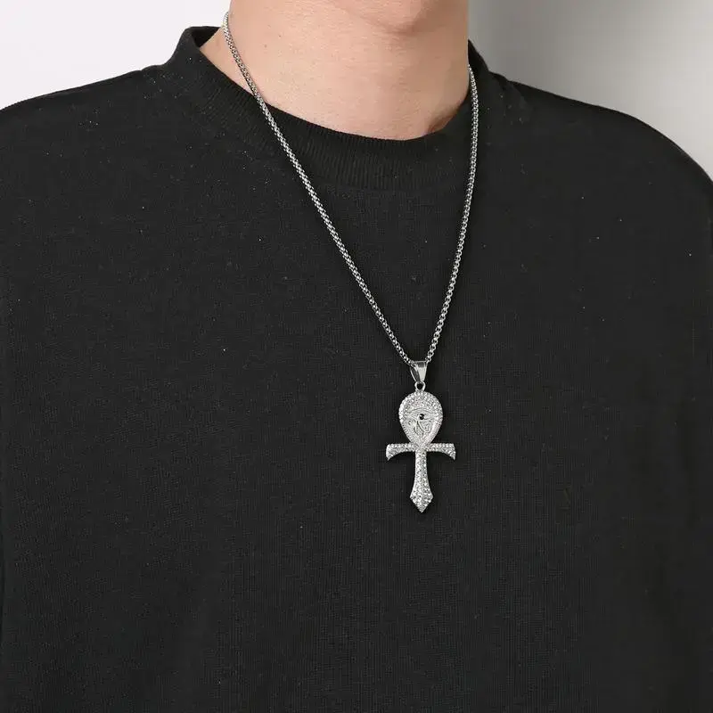CZ Eye of Horus Egypt Protection Pendant Coptic Ankh Cross Religious Stainless Steel Necklace