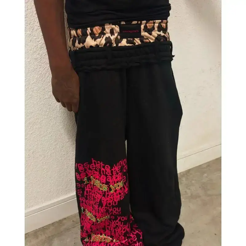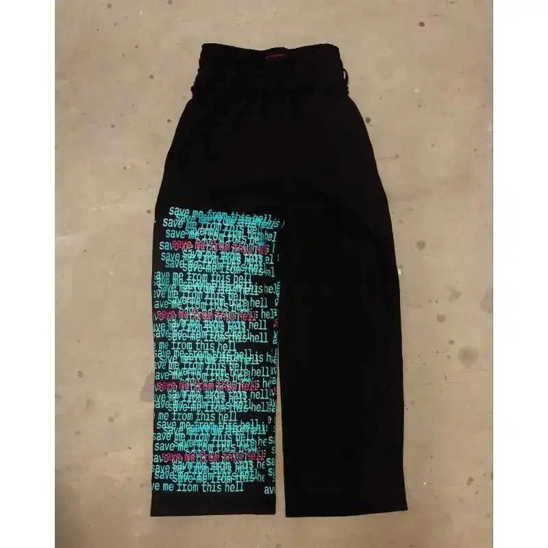 Retro double waist design casual street men's pants hip-hop gothic Harajuku loose Y2K letter pattern sport