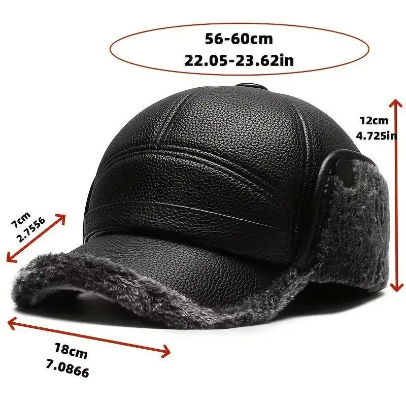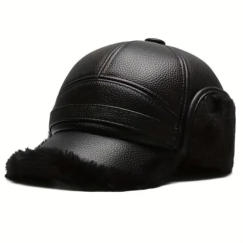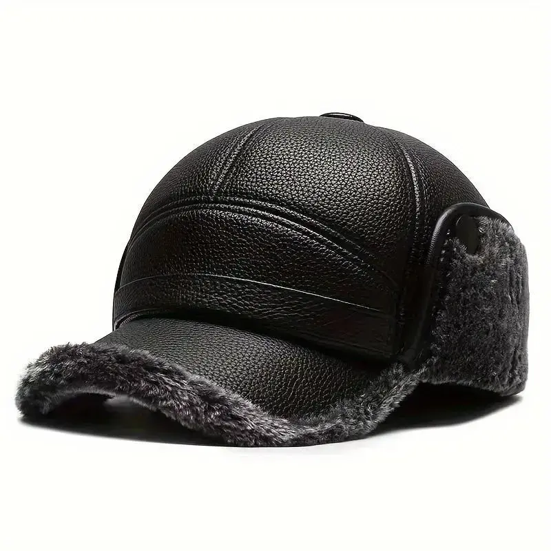 Street Style Men’s Winter Cap with Ear Warmers – Faux Leather Earflap Duckbill Hat for Elderly, Warm Cold Weather Headwear