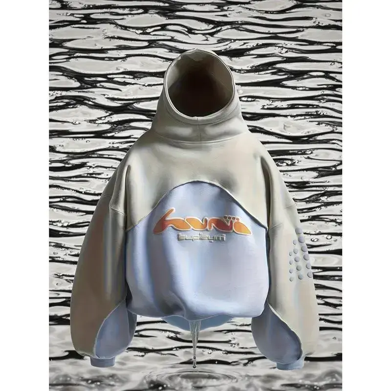 Men's Heavyweight Y2K Harajuku Streetwear Hoodie Thickened Retro Pullover with Patchwork Design Loose Fit Hip Hop Sweatshirt for Urban Fashion Premium High-Quality Fabric with Front Pocket Ideal Father's Day Gift for Street Style Lovers