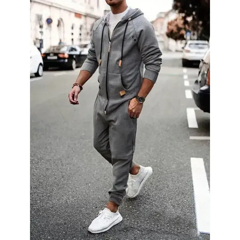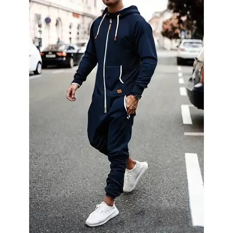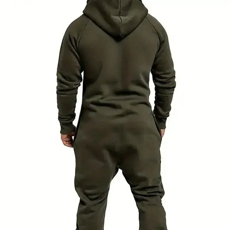 Set of 1 - Men's Hooded Fleece Lined Jumpsuit, Long Sleeve Full Zip Jumpsuit with Kangaroo BagGift