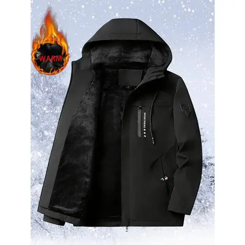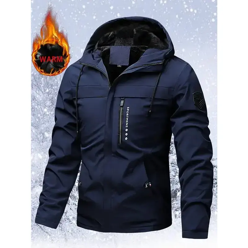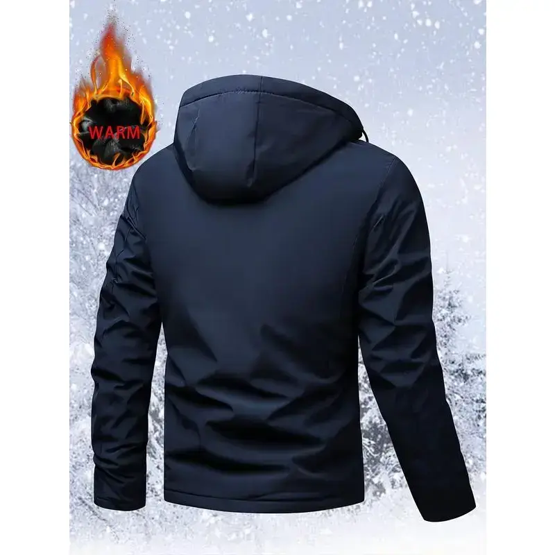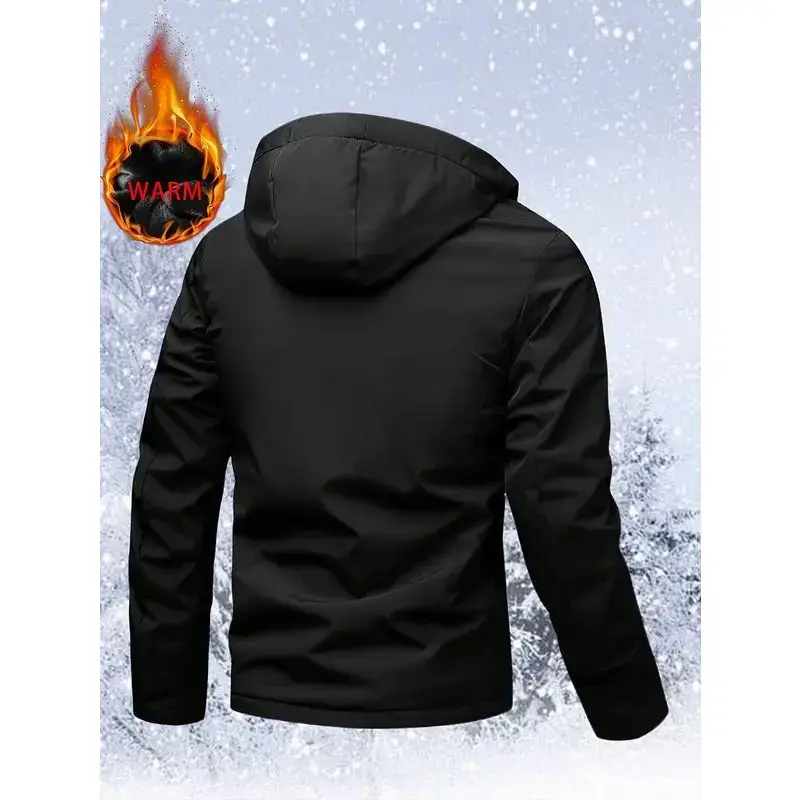Men's warm and insulated winter jacket with full zipper closure, hooded windbreaker, machine washable cold weather outdoor apparel, suitable for skiing, snowboarding, hiking Windproof Outerwear