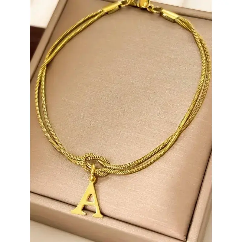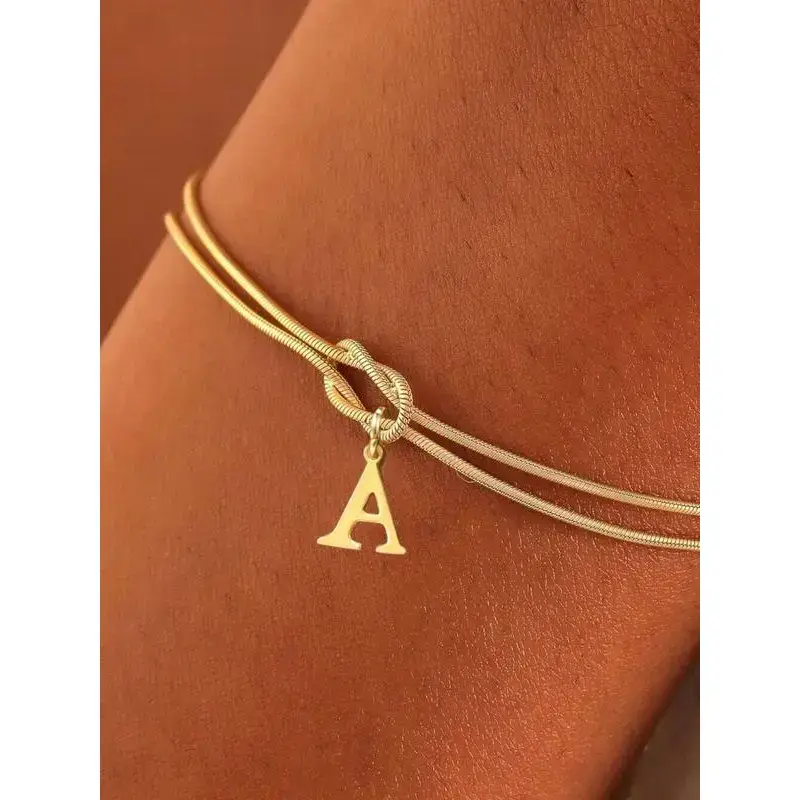 Stainless Steel Alphabet Charm Bracelet, Elegant and Simple Handmade Jewelry, Perfect Gift for Couples, Letter Link Bracelet