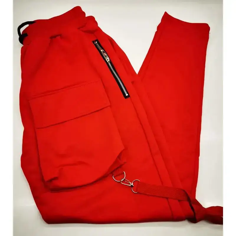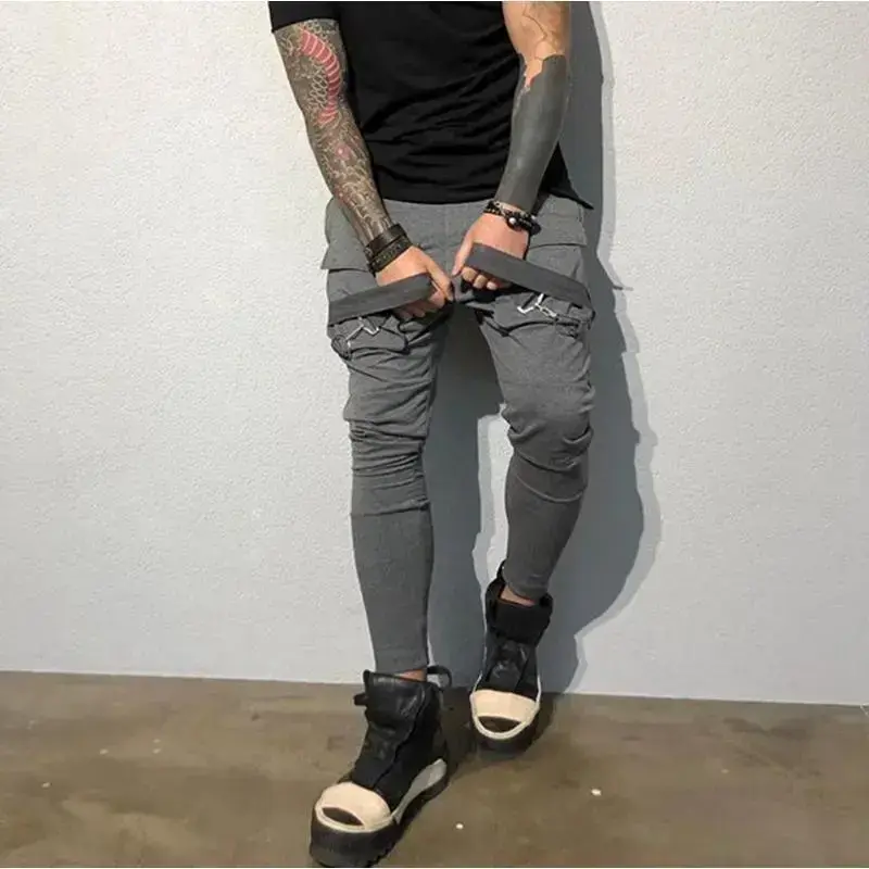 Mens Running Stretch Tights Sweatpants Sports Breathable Fitness Hip Hop Cotton Multi Pocket Cargo Pants Slim Leggings Chain Menswear Trouser