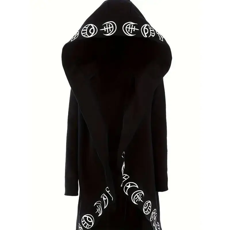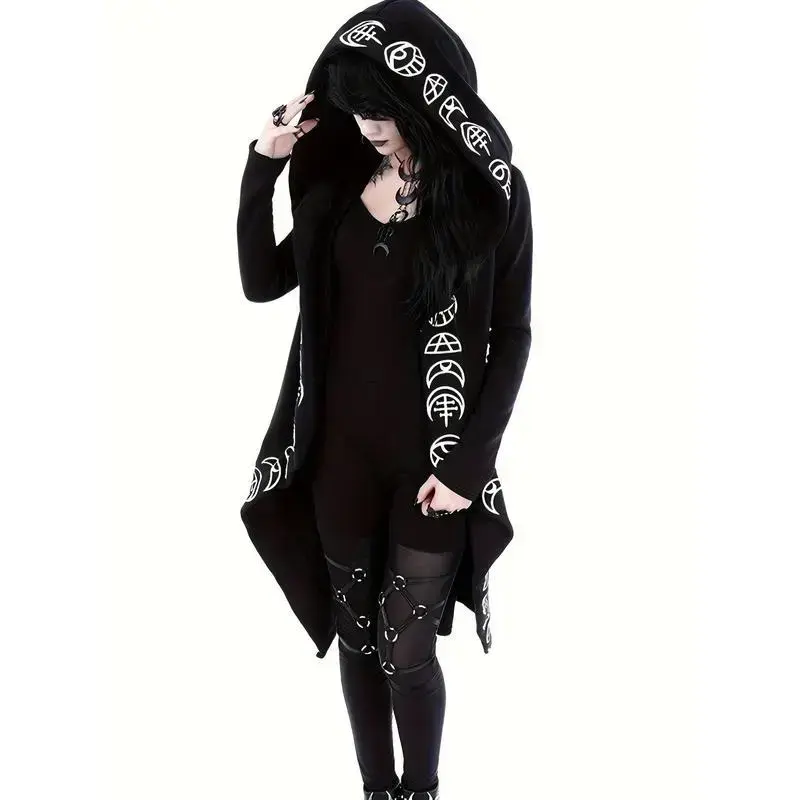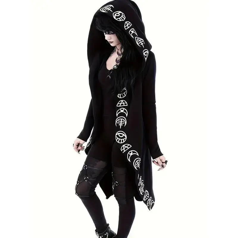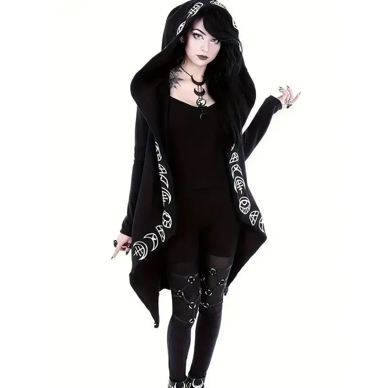 Gothic Witchcraft Pattern Hooded Cardigan for Women, Long Sleeves with Hood Fabric Knitwear