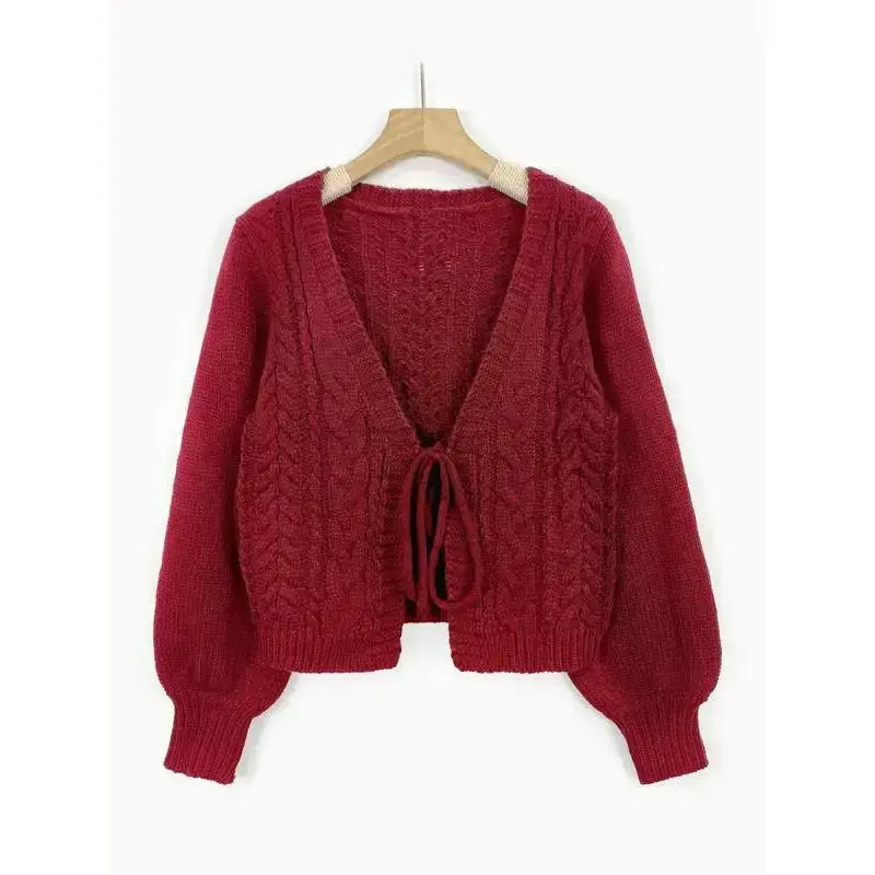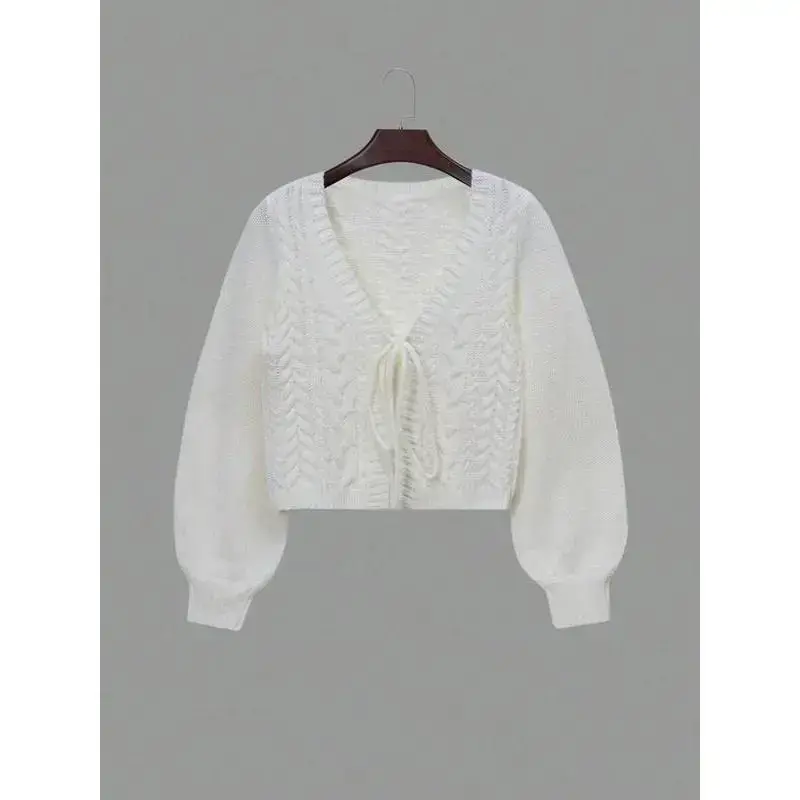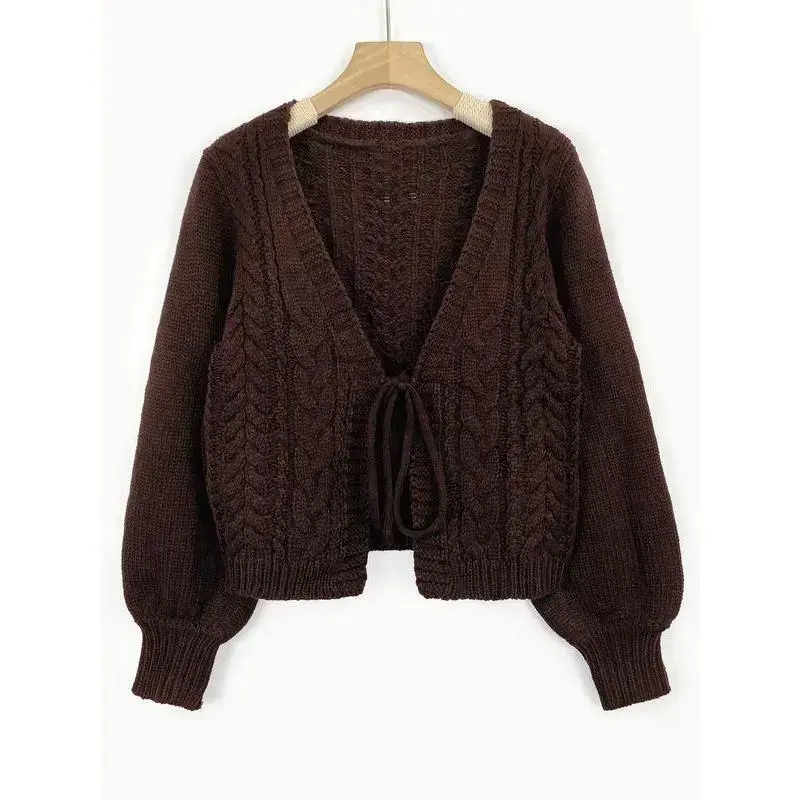 Pattern:Plain,ButterflyRegion Of Origin:ChinaQuantity Per Pack:Neckline:V NeckSleeve length: long sleeveSleeve Type:Drop ShoulderSeason:Spring&FallStyle:CasualFit:Loose-FittingWashing Instructions:Machine WashableDesign:Tie FrontComposition:AcrylicWeaving Method:Knitting [Lantern Sleeves]: Features distinctive lantern sleeves that add a flair, setting it apart in the category of open cardigans. [Moderate Fabric Thickness]: Crafted with a moderate fabric thickness, suitable for both spring and fall, allowing for year-round wear. [Loose Fit]: Designed with a loose fit to provide ease of movement and a relaxed silhouette, enhancing casual wear. [Plain Pattern]: Showcases a plain pattern, making it a versatile piece that can easily coordinate with various outfits. [V-Neck Opening]: The V-neck opening adds dimension and enhances breathability, offering a comfortable fit without compromising aesthetics.