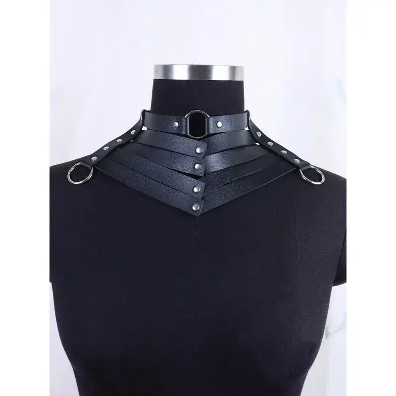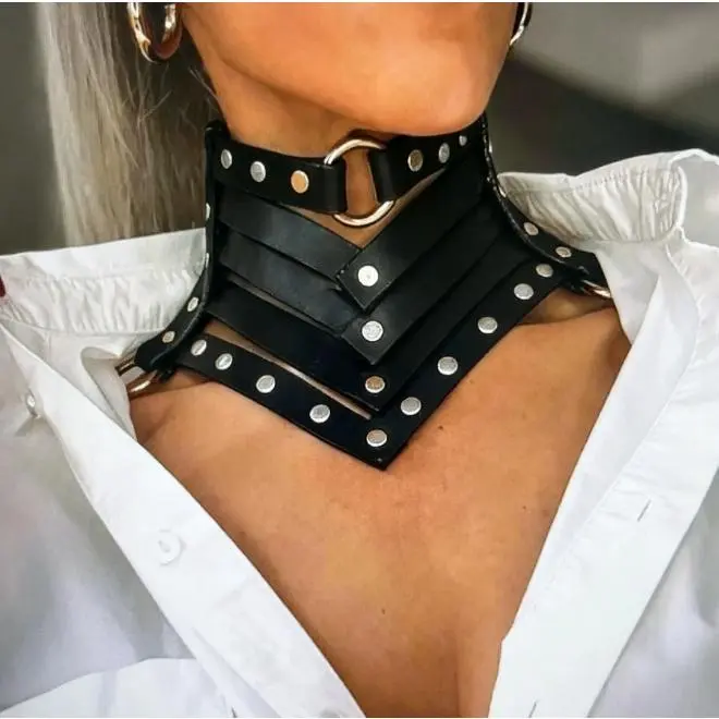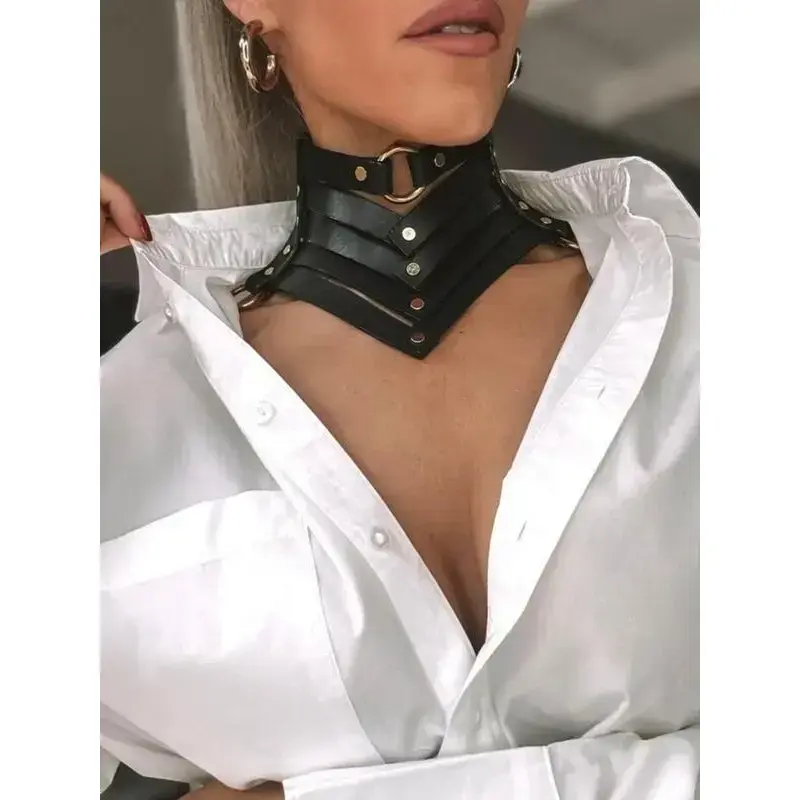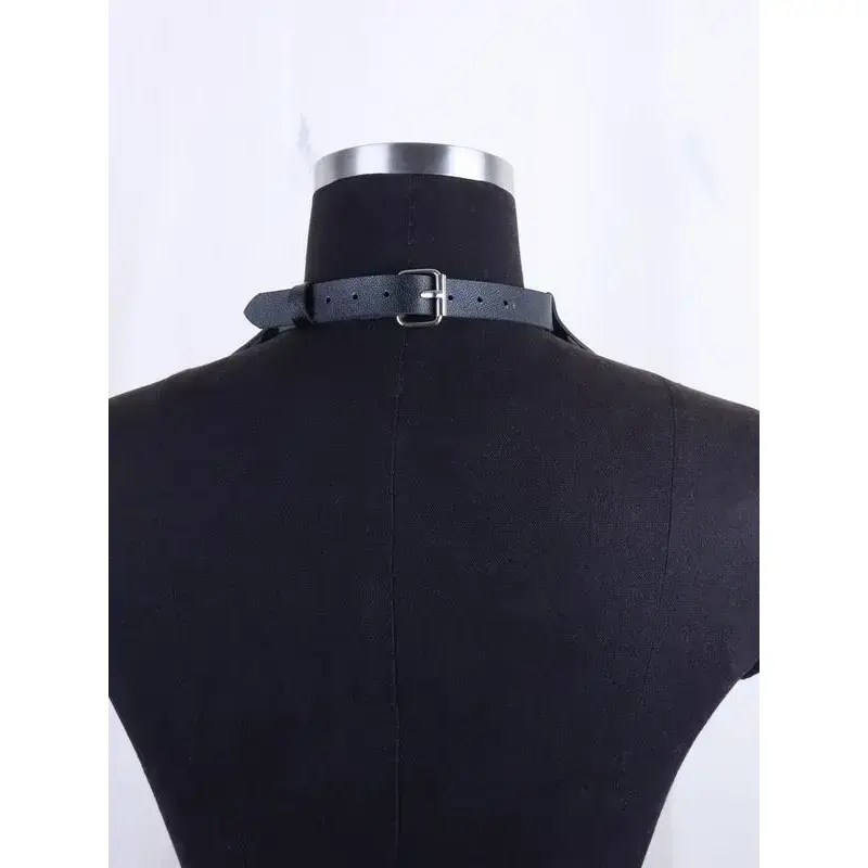 Women's Punk Style PU Leather Choker Necklace, Stackable Clavicle Chain, Halloween Dark Gothic Role Play Accessory, All Season Fashion Costume Prop