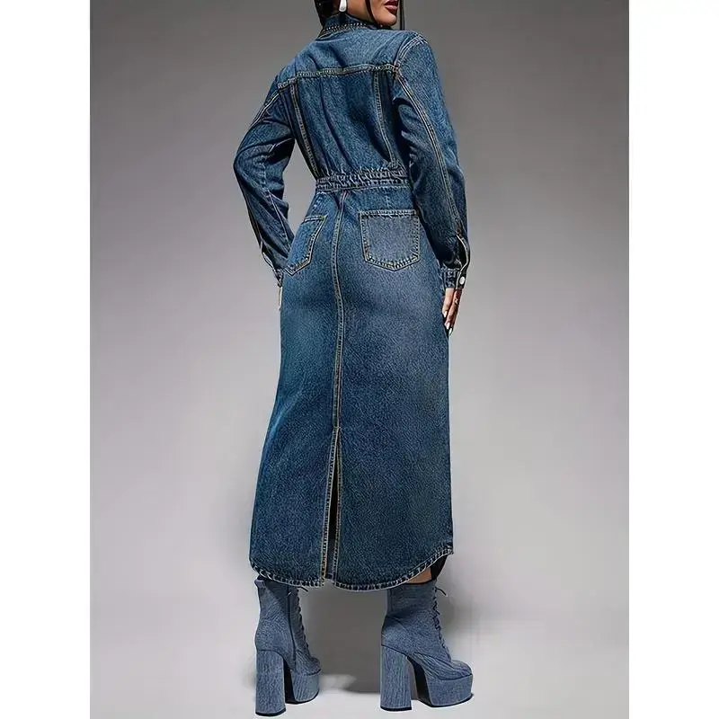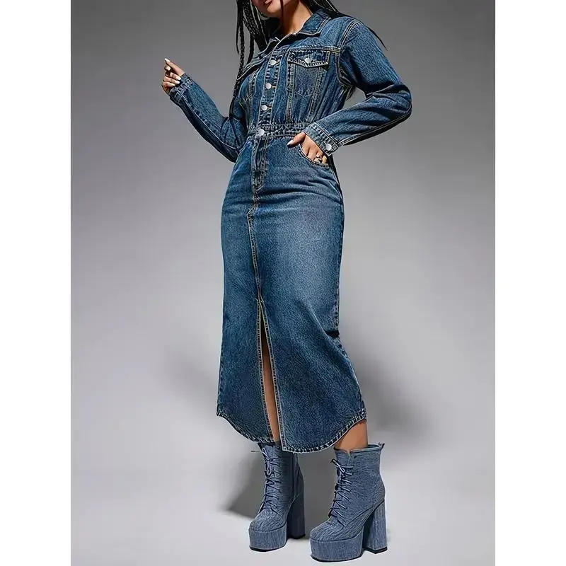 Fall?fashion?must?haves Elegant Women's Midi Skirt with Lapel and Side Slits - Button Front, Light Blue, Perfect for Spring/Summer Womenswear??gift?? Bottoms Casual