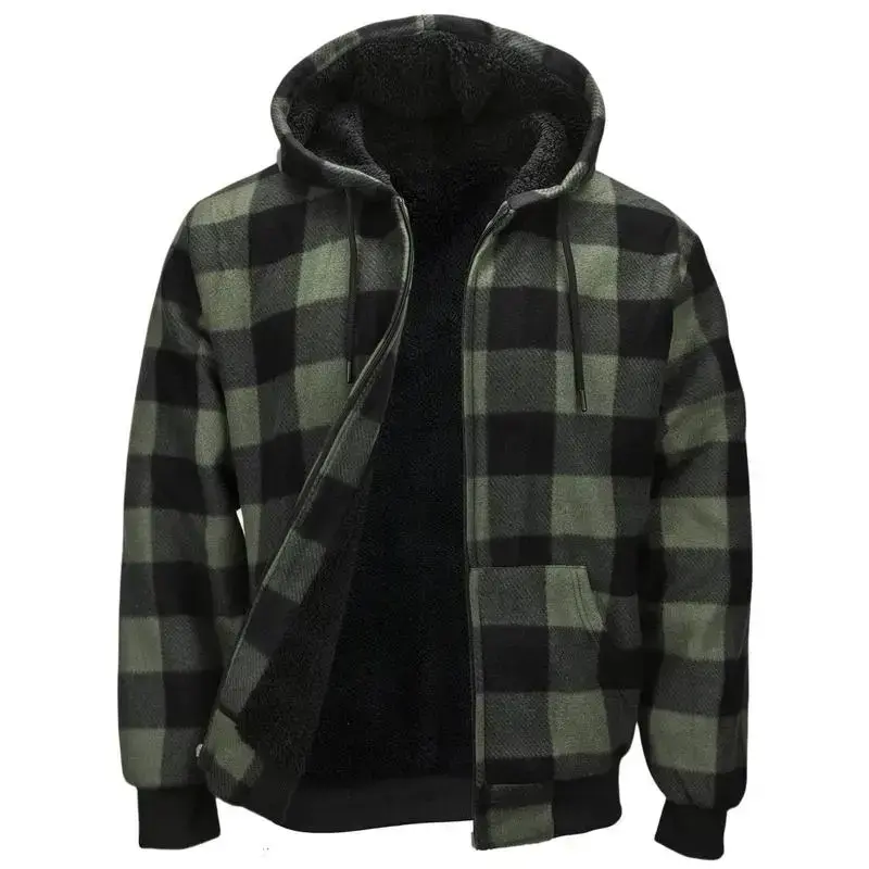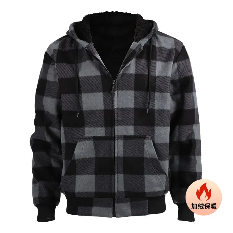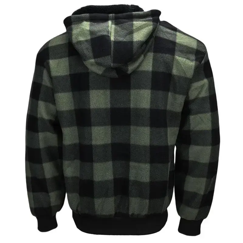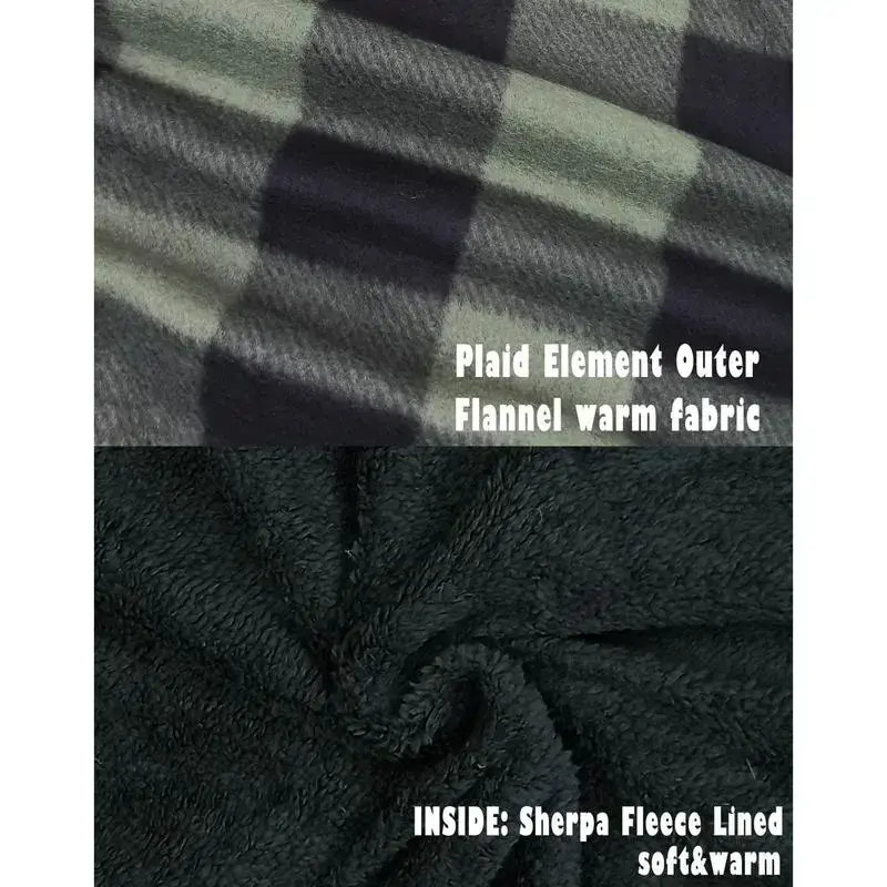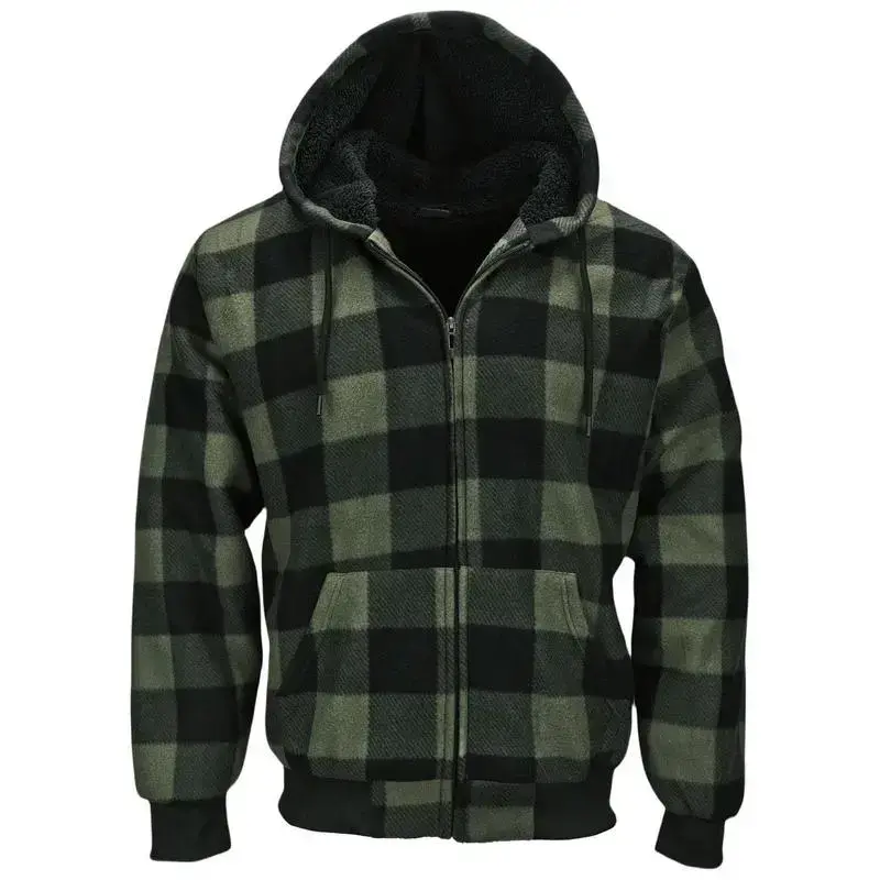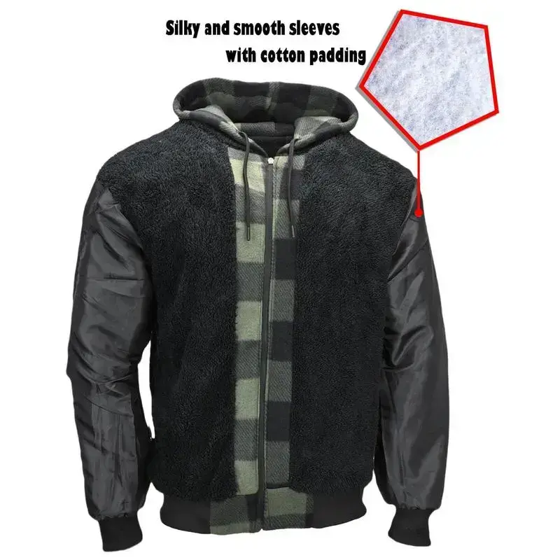 Mens Sherpa Fleece Lined Hoodie Plaid Flannel Jackets With Hooded Winter Warm Coats Heavy Sweatshirt Full Zip Up