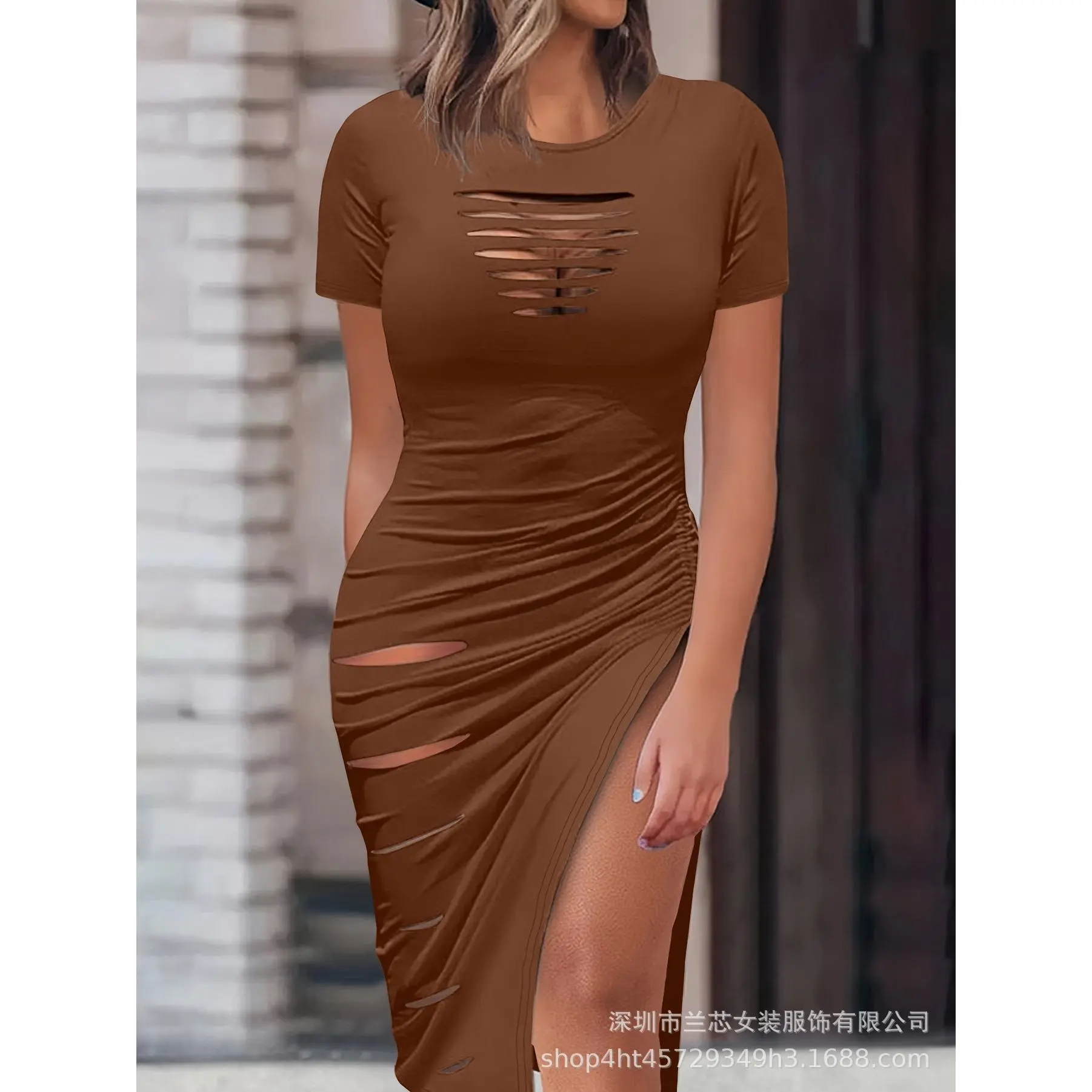 Women's Bodycon Dress ? Elevate your style with this Women's Black Plain Cut Out Ripped Split Thigh Bodycon Dress. Perfect for party, club, dating, formal workwear, and everyday wear. The dress features a drawstring side ruched design for a flattering fit. Available in Black, Red, and Army Green. Size Options Key Features Perfect for