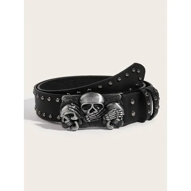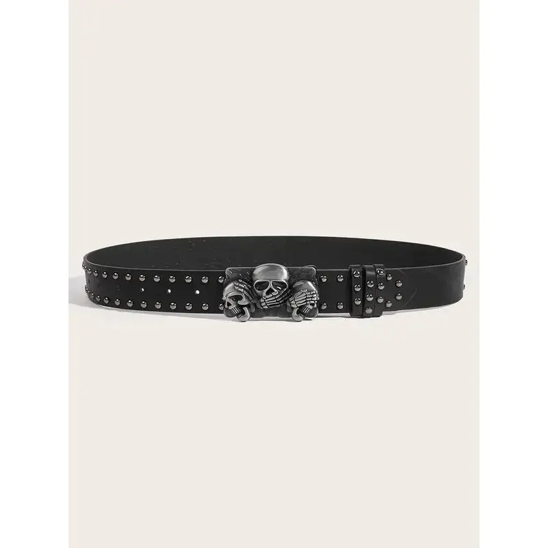 Unisex Skull Head Alloy Buckle Belt, Y2K Punk Street Style Waistband for Jeans & Casual Pants, Perfect for Halloween & Christmas Parties, Trendy Exquisite Belt