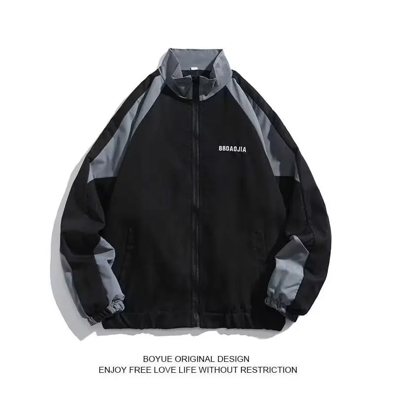 Street fashion Unisex Jacket, Couples Color Block, College Style Lightweight, Thin, Casual, Versatile, Fashionable, Windproof, Durable, Comfortable, Perfect for Spring/Autumn Streetwear and Outdoor Activities