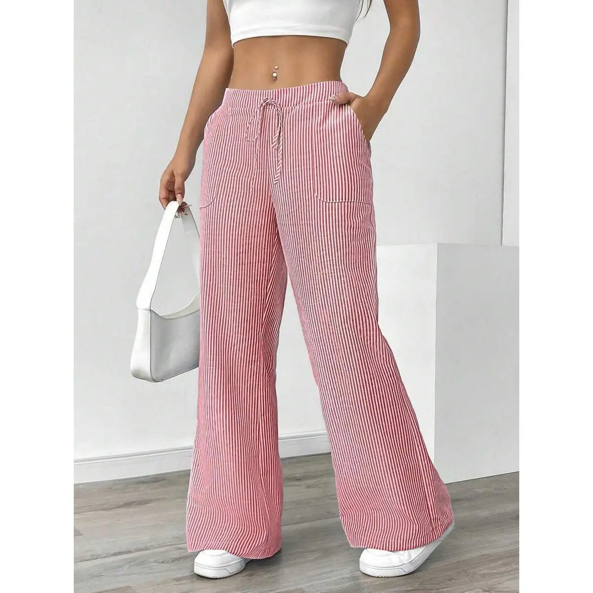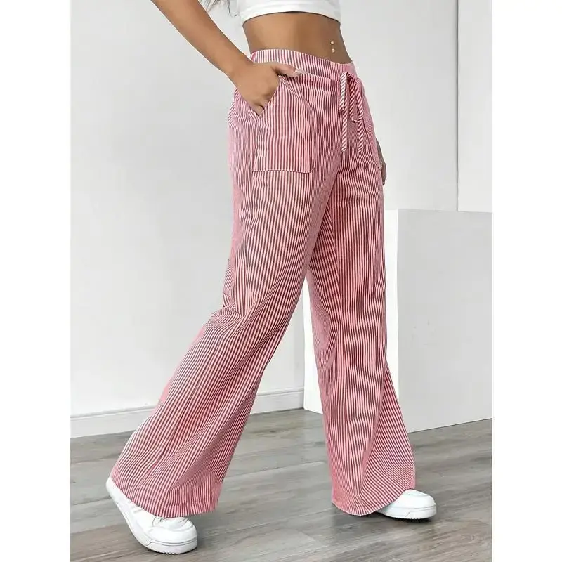 ?? Slant Pockets Wide Leg Pants ?? Elevate your casual wardrobe with these Slant Pockets Wide Leg Pants. Crafted from 100% polyester, these pants feature a casual striped print and a loose drawstring waist. Perfect for fall, they offer micro elasticity for comfort. The straight leg design and random printing add a unique touch. ?? Material & Care ?? Product Details ?? Key Features ??